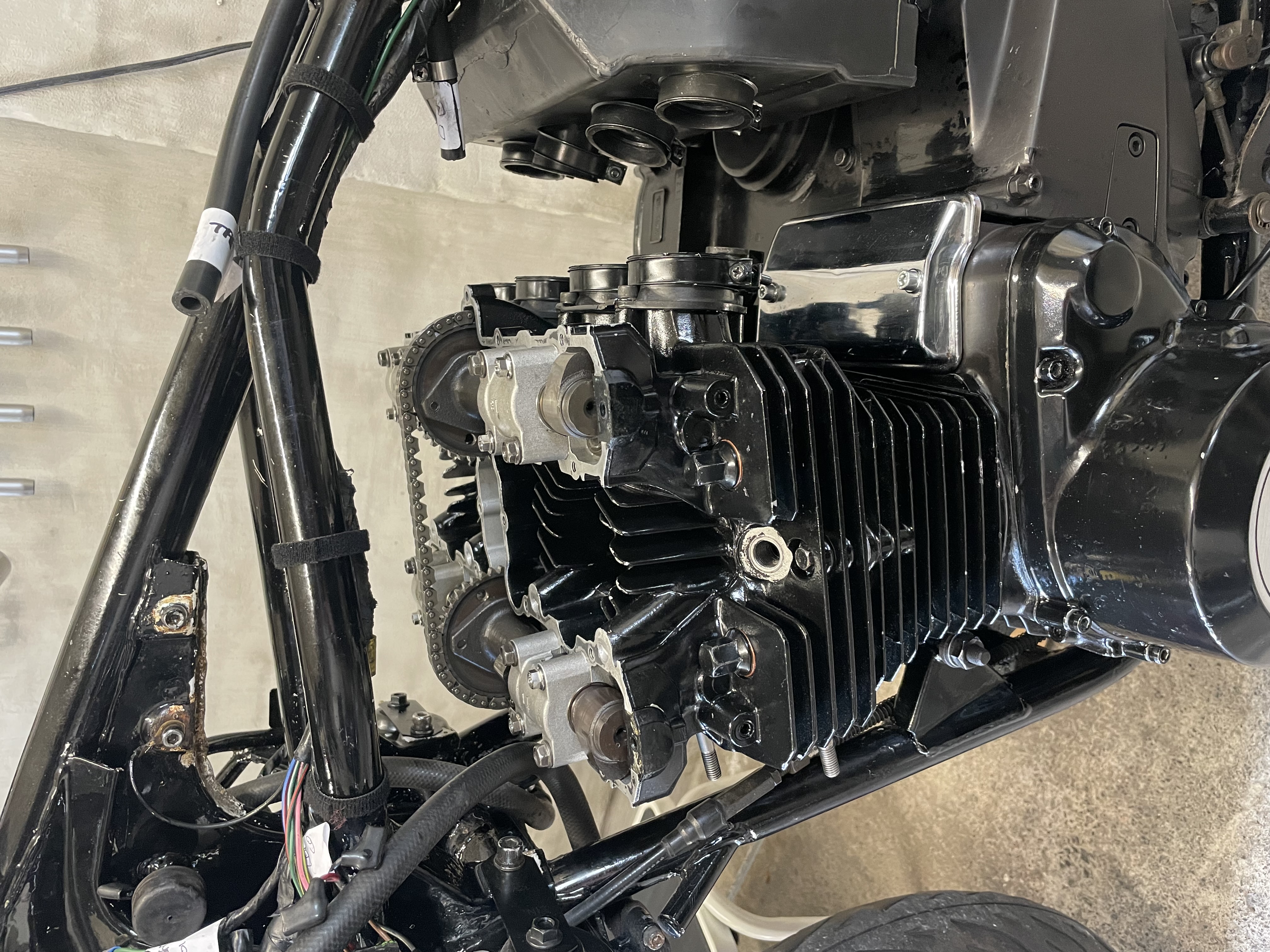 My intention was to get the bike running then return the paintwork to firecracker red. I pieced the bike together and got it running but it was a bit rough. It was leaking oil from the cylinder head gasket and blowing from exhaust number 2 so it was beginning to appear like a head off job :shock: