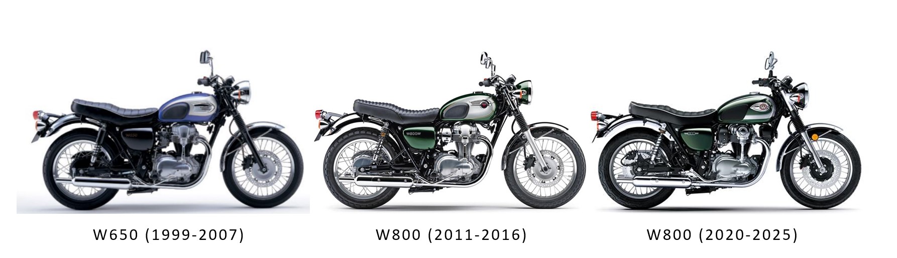 when attempting brisk overtakes. The successor W800 (introduced in 2011 with EFI and a larger 773 cc displacement) offered slightly more low-end torque but didn't