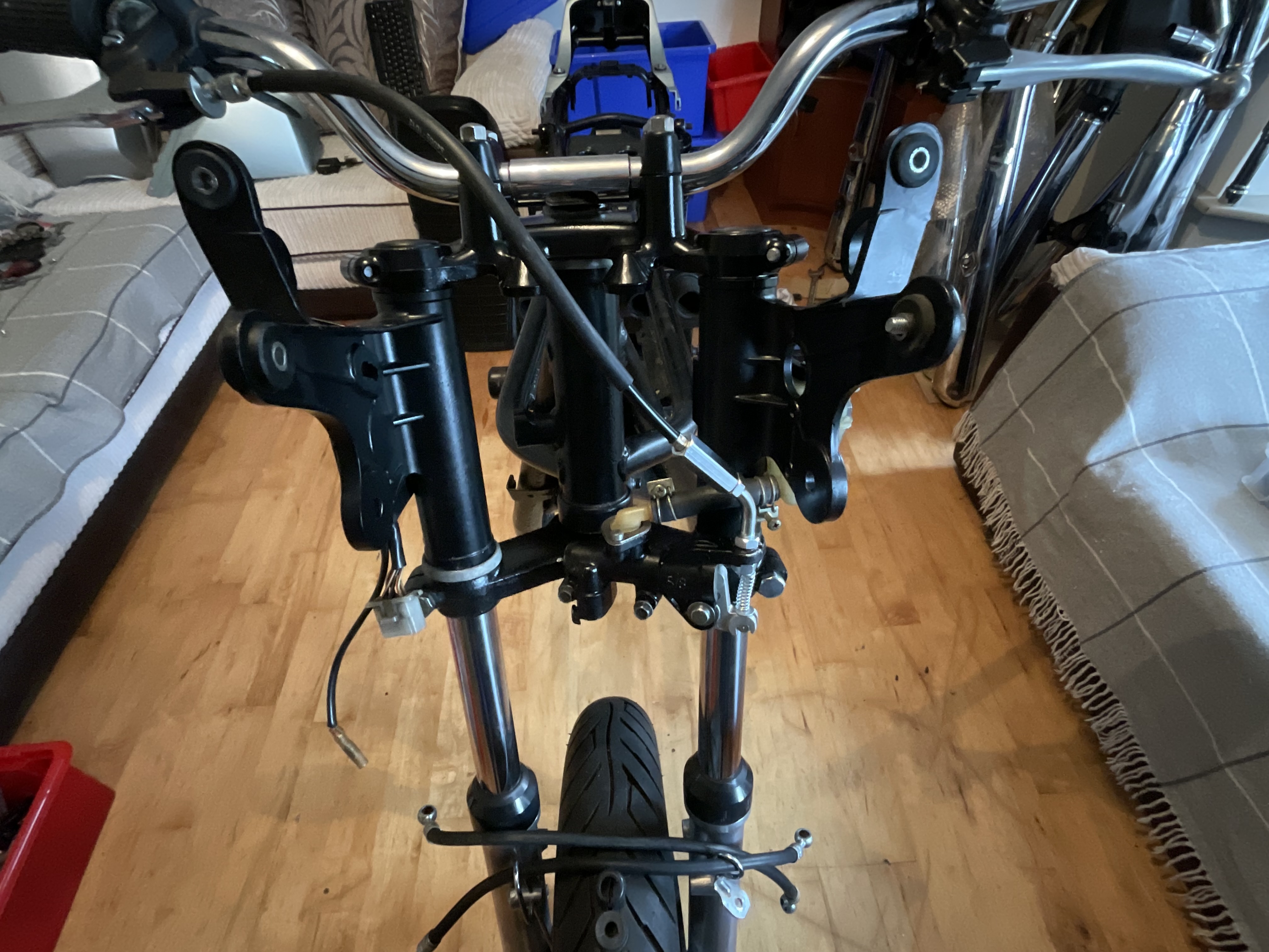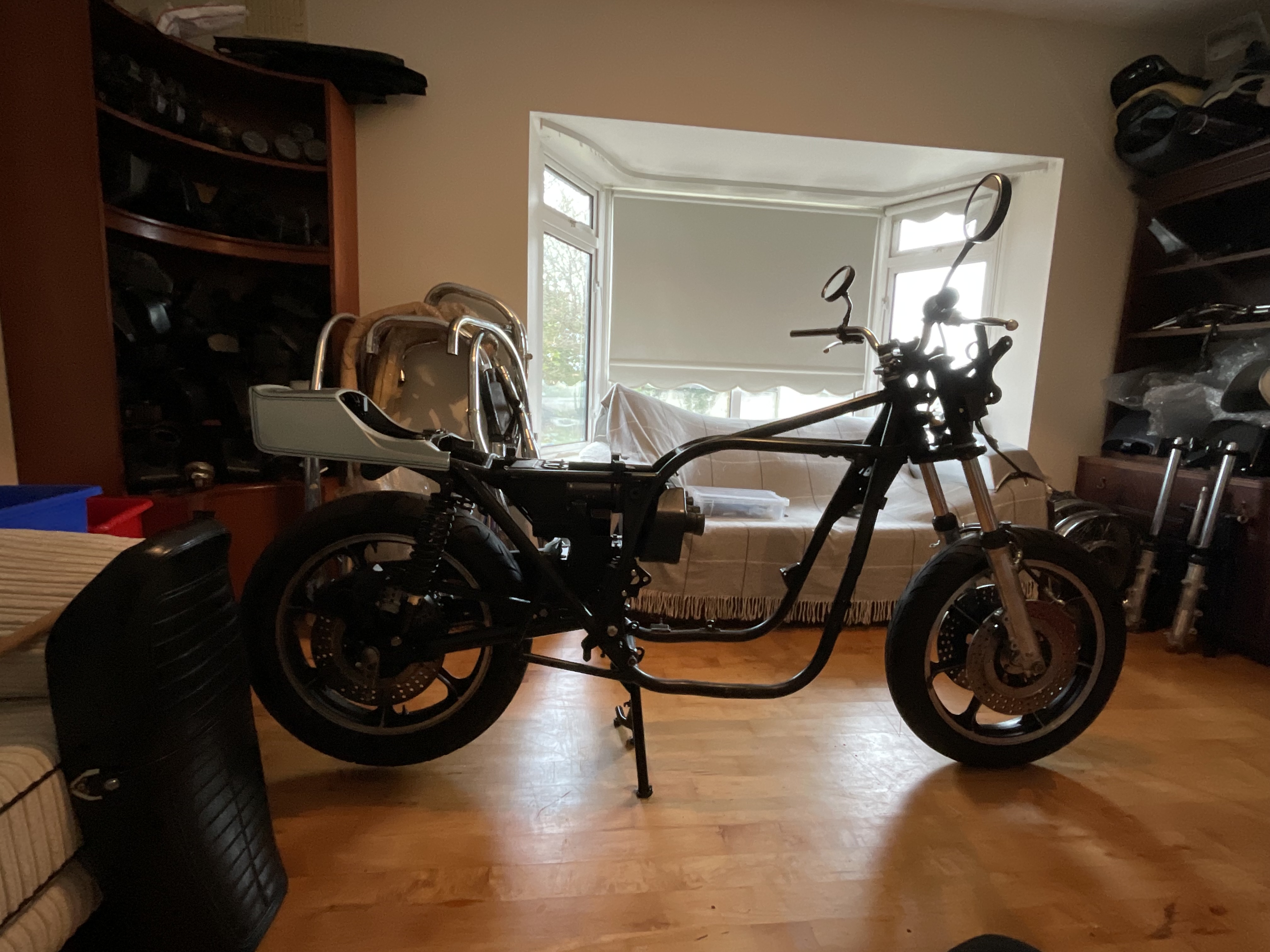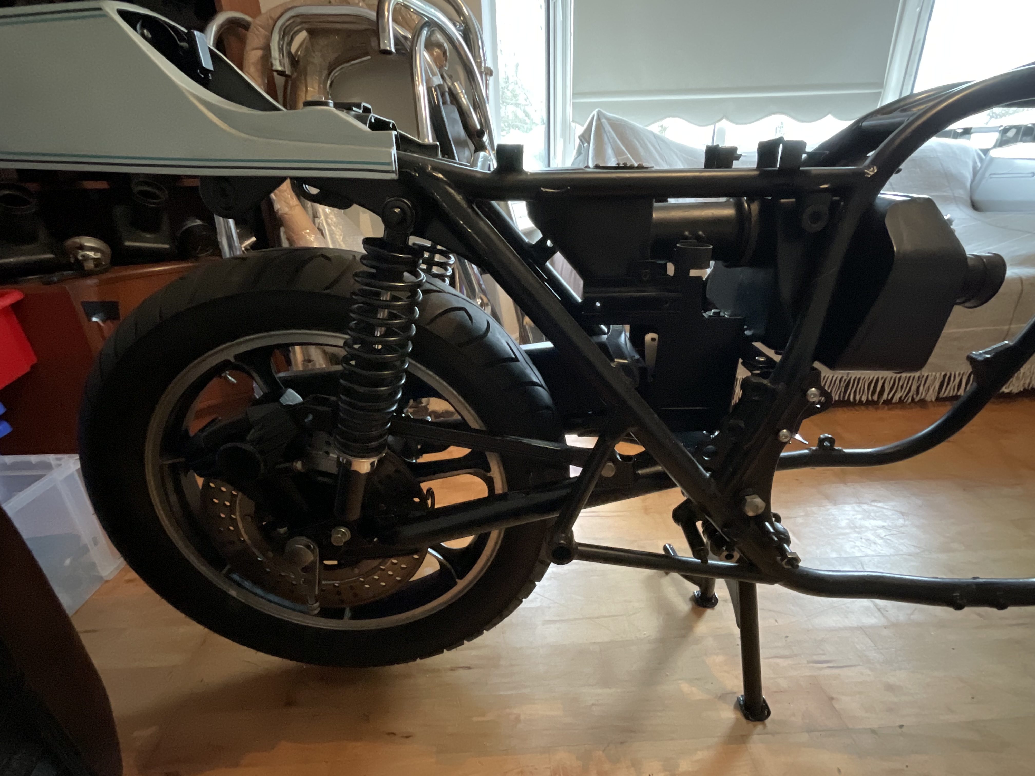 No problem. I guess it’s not an issue if I’m hijacking my own thread. The Bike will be built from frame up from a frame I bought from DK motors that was never a Bike so I’m piecing it all together as I go I’m trying to stick with the US model as most of the parts I have worked best with that. It’s going to be as close to factory as I can get including original shocks, screen, exhaust, air box with snorkel and brakes and lines. There are only a handful of parts that I need, but I buy from Japan and it’s not as hard finding the right parts as getting them back to Ireland. It will require a full repaint, but I’m hoping that I’ll have that done before March as there is a fairly big show in Ireland in April. This is as far as she looks now. There are a few things like the frame has been powder coated not wet coated, but it’s more about the overall parts of the Bike rather than the finishes.