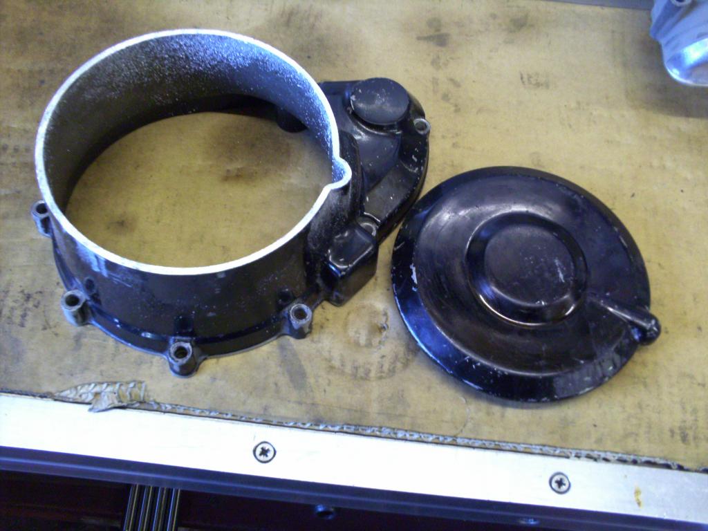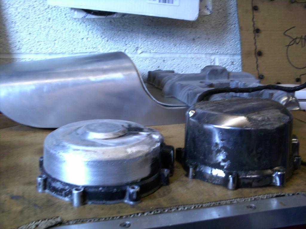 I built up the inside of the joint with weld so that the covers edges could be profiled for a rounder appearance to match the early motors covers and have begun cutting away the rest of the case so that ignitions shiney loveliness isn't fully hidden :D