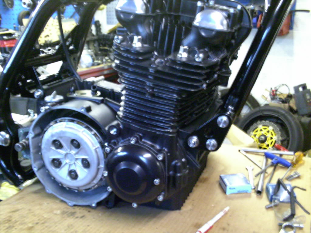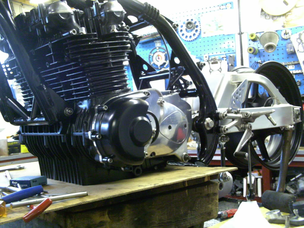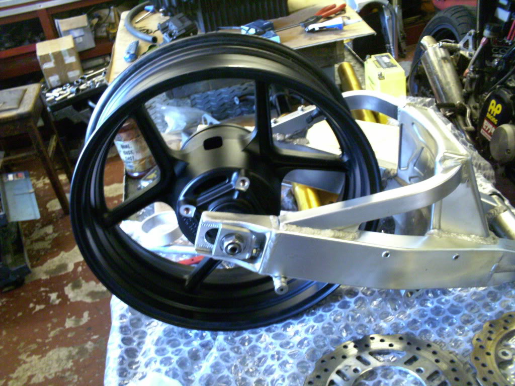 Finally sourced a matching 5.5 inch rim from a Z750 to replace the ZX10R's 6 inch which i used for the dry build and is too wide to get correct chain alignment whilst keeping the wheel central.