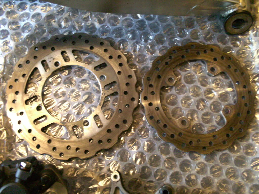 so back to ebay to buy a disc which on arrival i find it is 30mm larger in diameter and my modified R1 caliper and hanger are useless