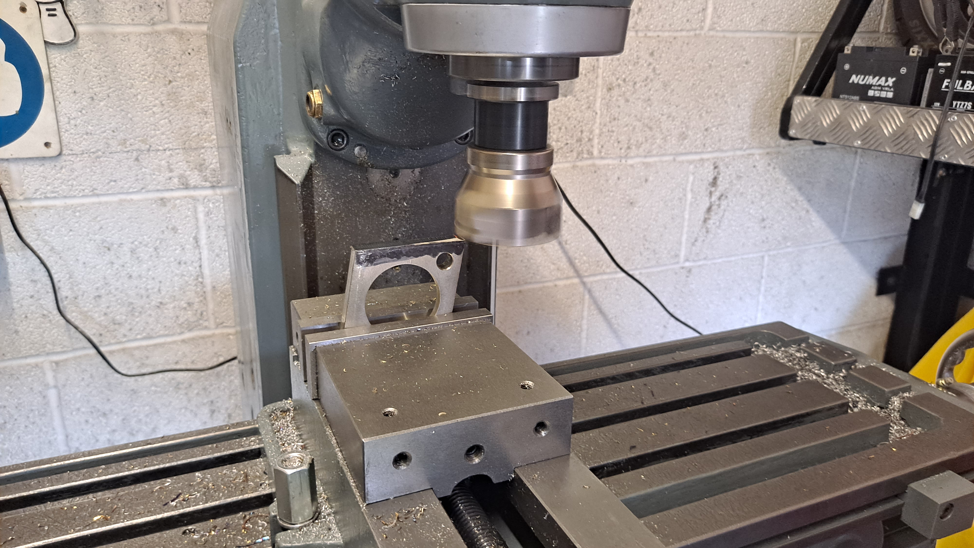 The 10mm plate for the exhaust clamps was cut into four, bored out on the lathe for the spigots and then became the first proper job for the restored Harrison mill to machine the angles on them