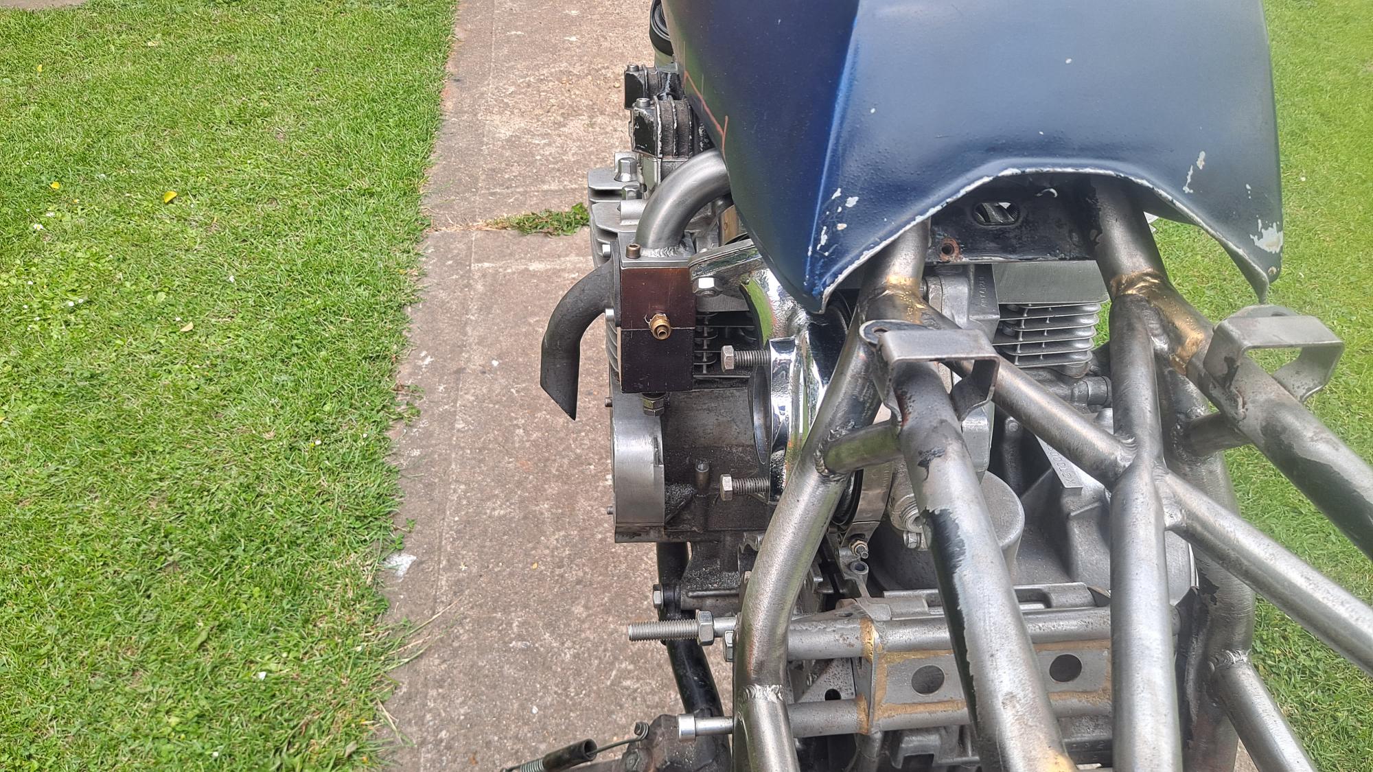 The collector will sit a little higher and further out so the original tin frame gusset had to go entirely which was on the cards anyway to be replaced by some bracing tubes and this will allow a better flow of air over the motor.
