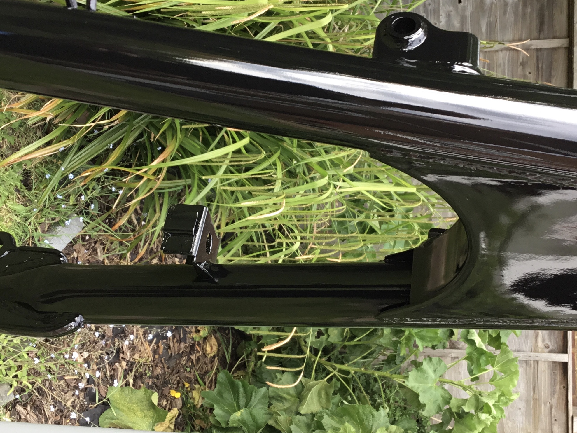 Experience with the swing arm a few weeks ago has shown me that Frosts chassis paint takes a very long, read weeks, to harden. Yes it’s dry within a couple of days but is very susceptible to marking. The plan is to leave it hanging up in the garage for at least two weeks before touching it.