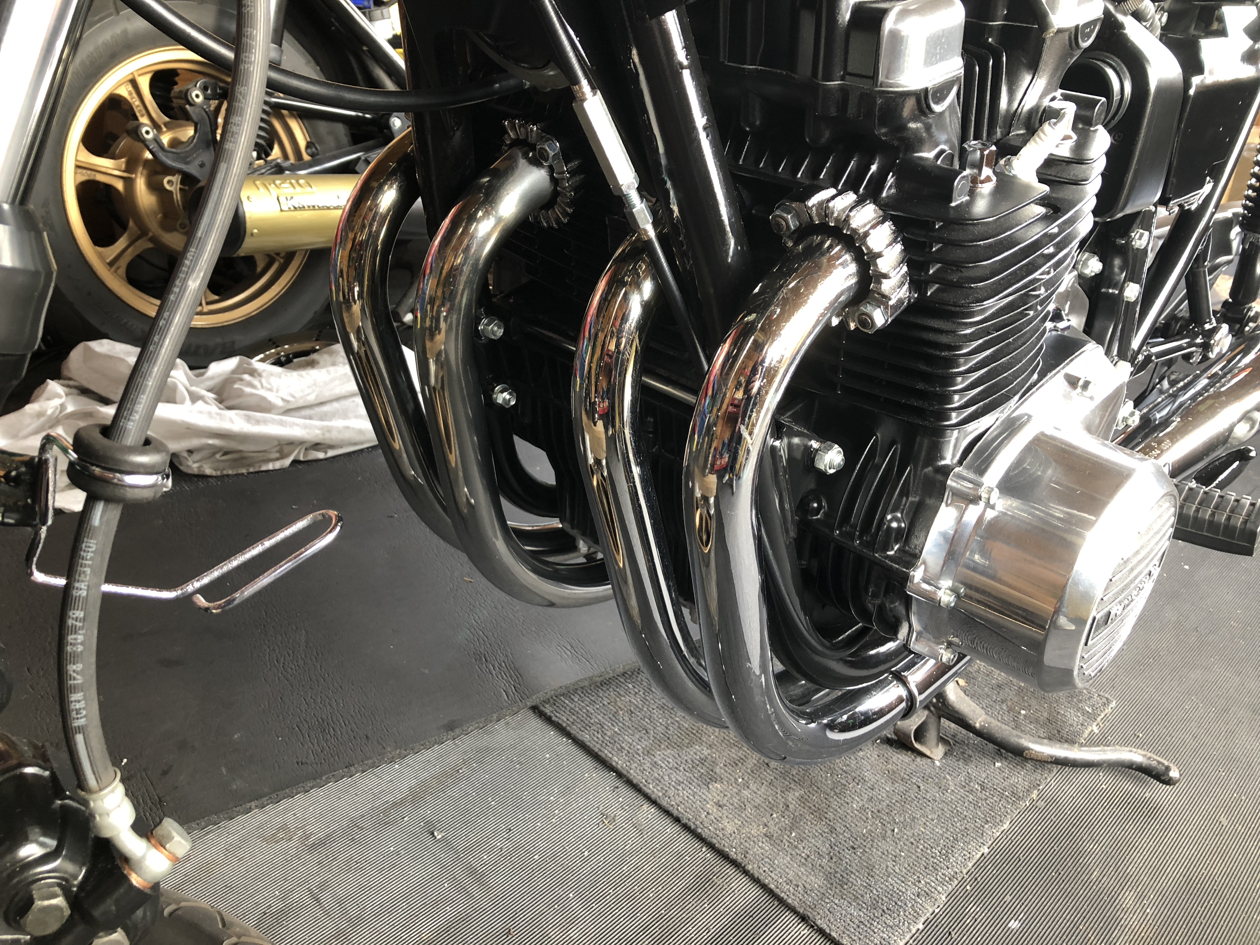 Little bit more progress today. End of 4-2 pipes repainted in VHT. Painter has finished the body set and wheels and they’ll be back with me by the weekend.