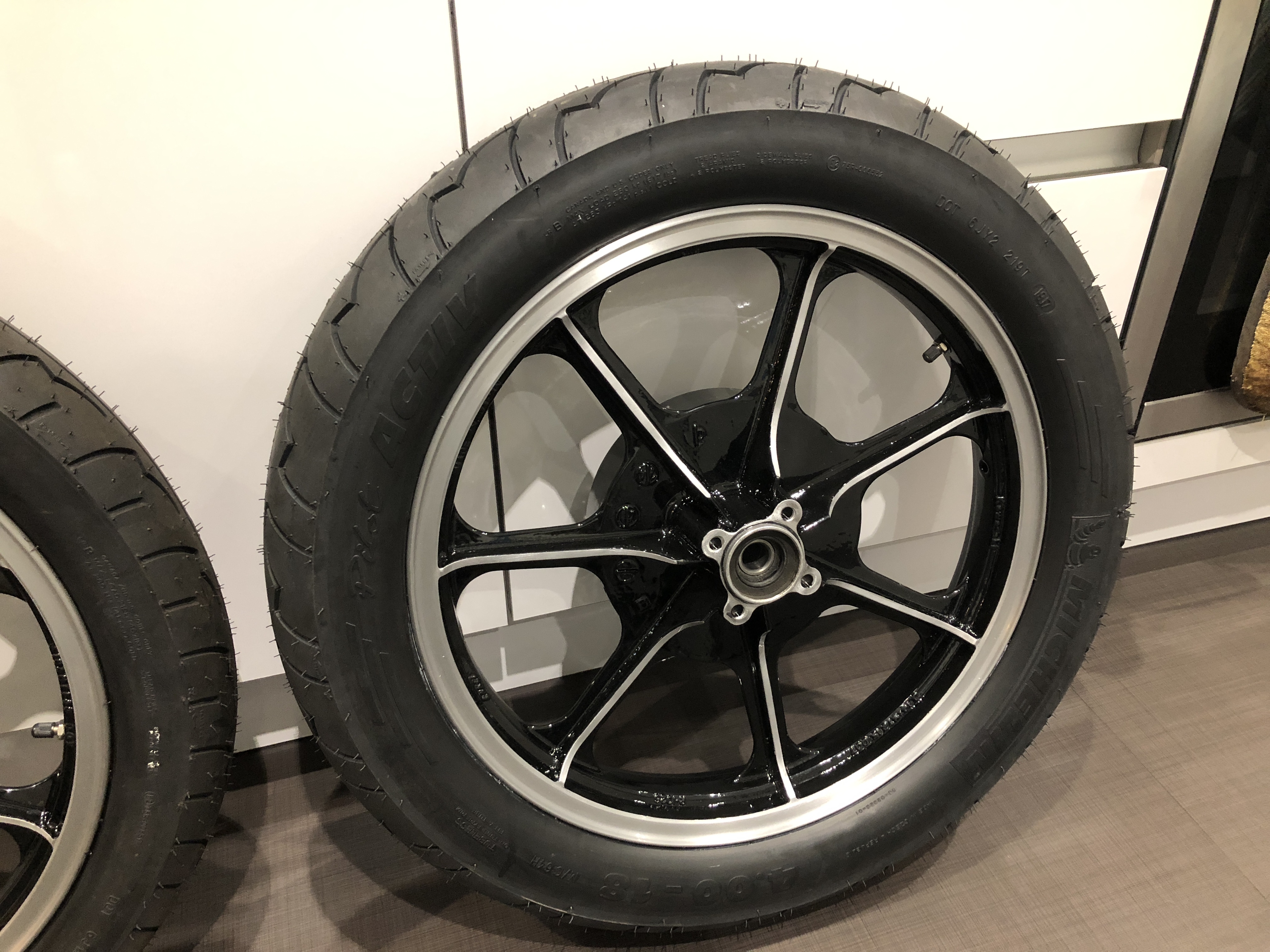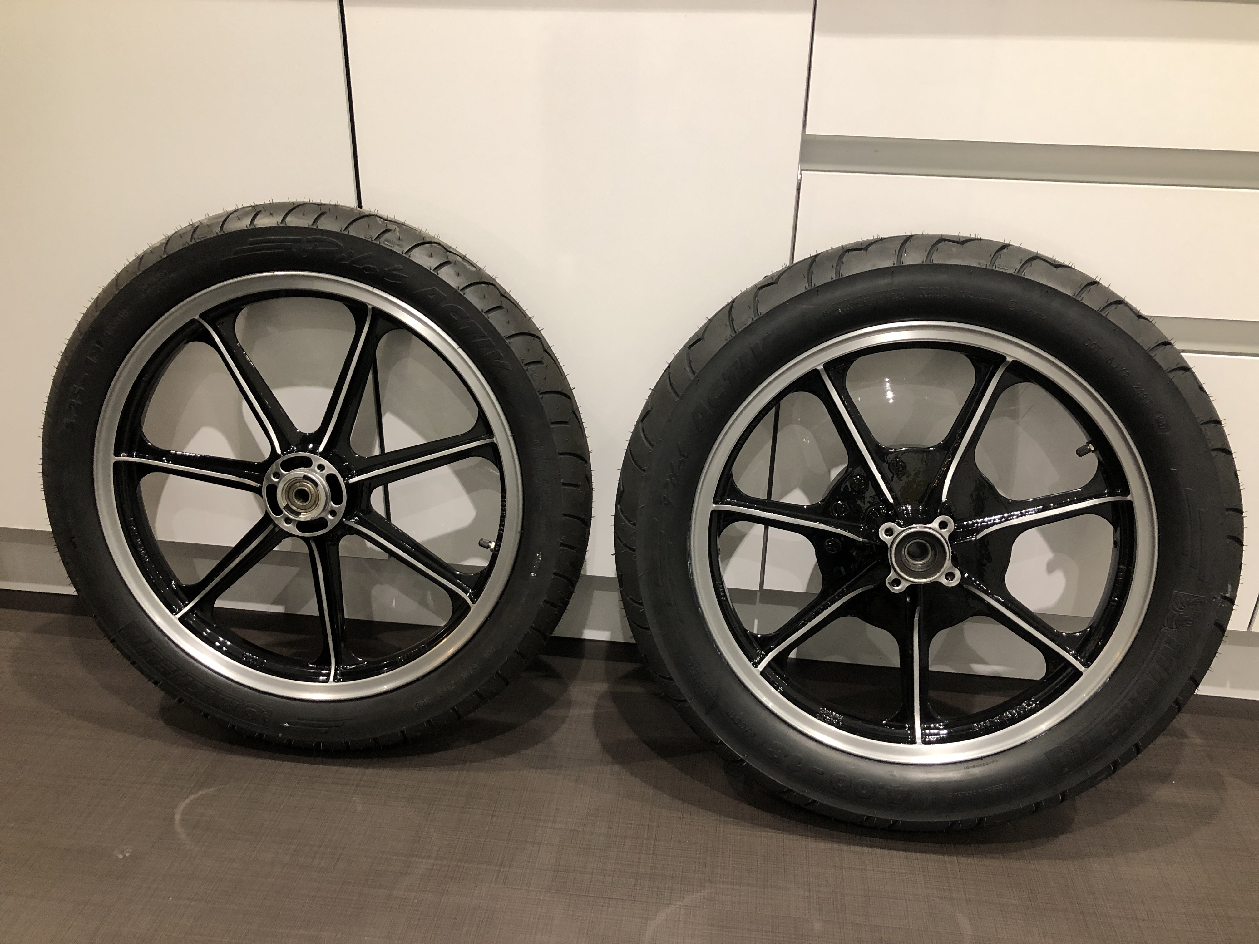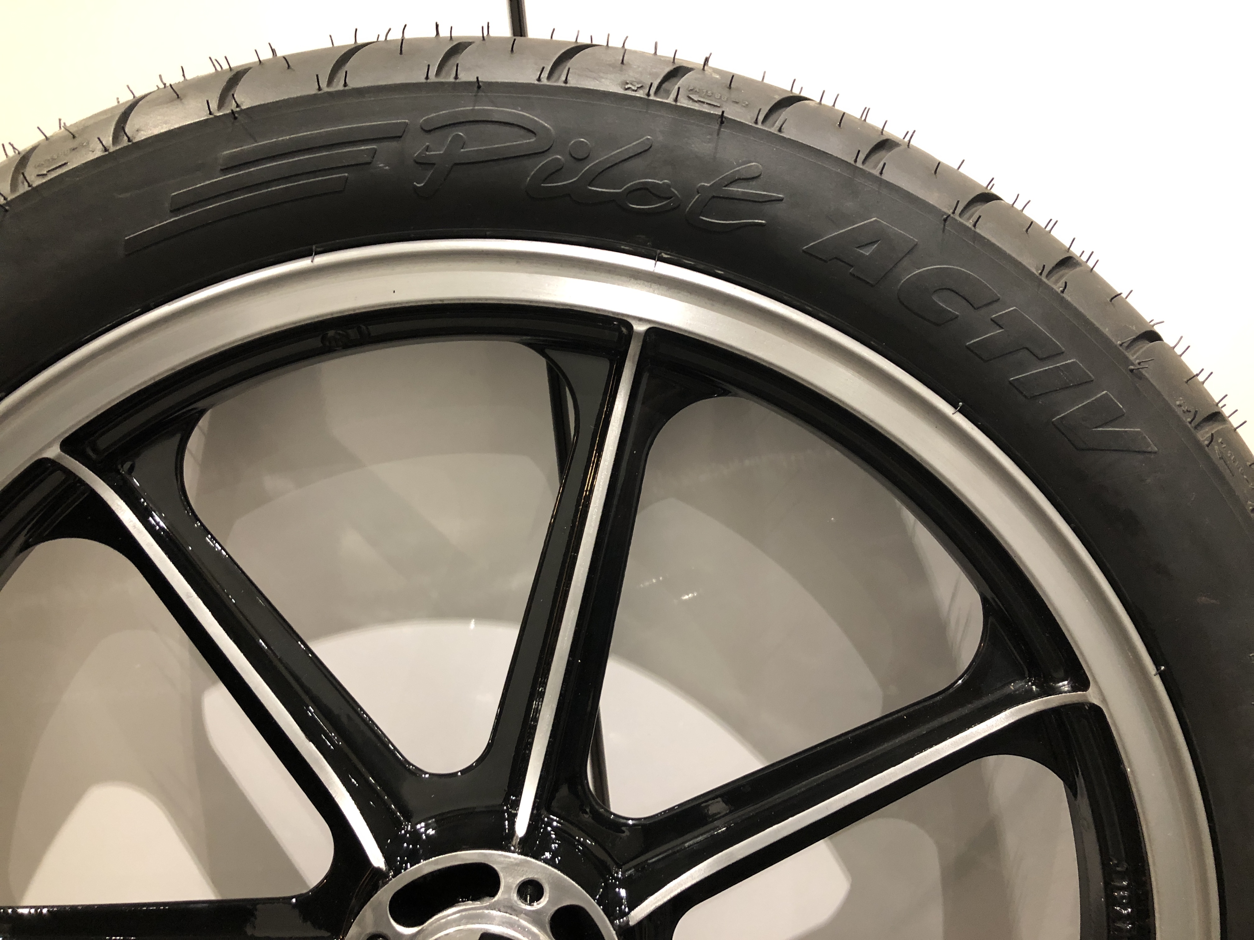 New rubber (Michelin Pilot Sport) fitted to refurbished original wheels (stripped, painted, diamond cut, lacquered). Looking tidy...