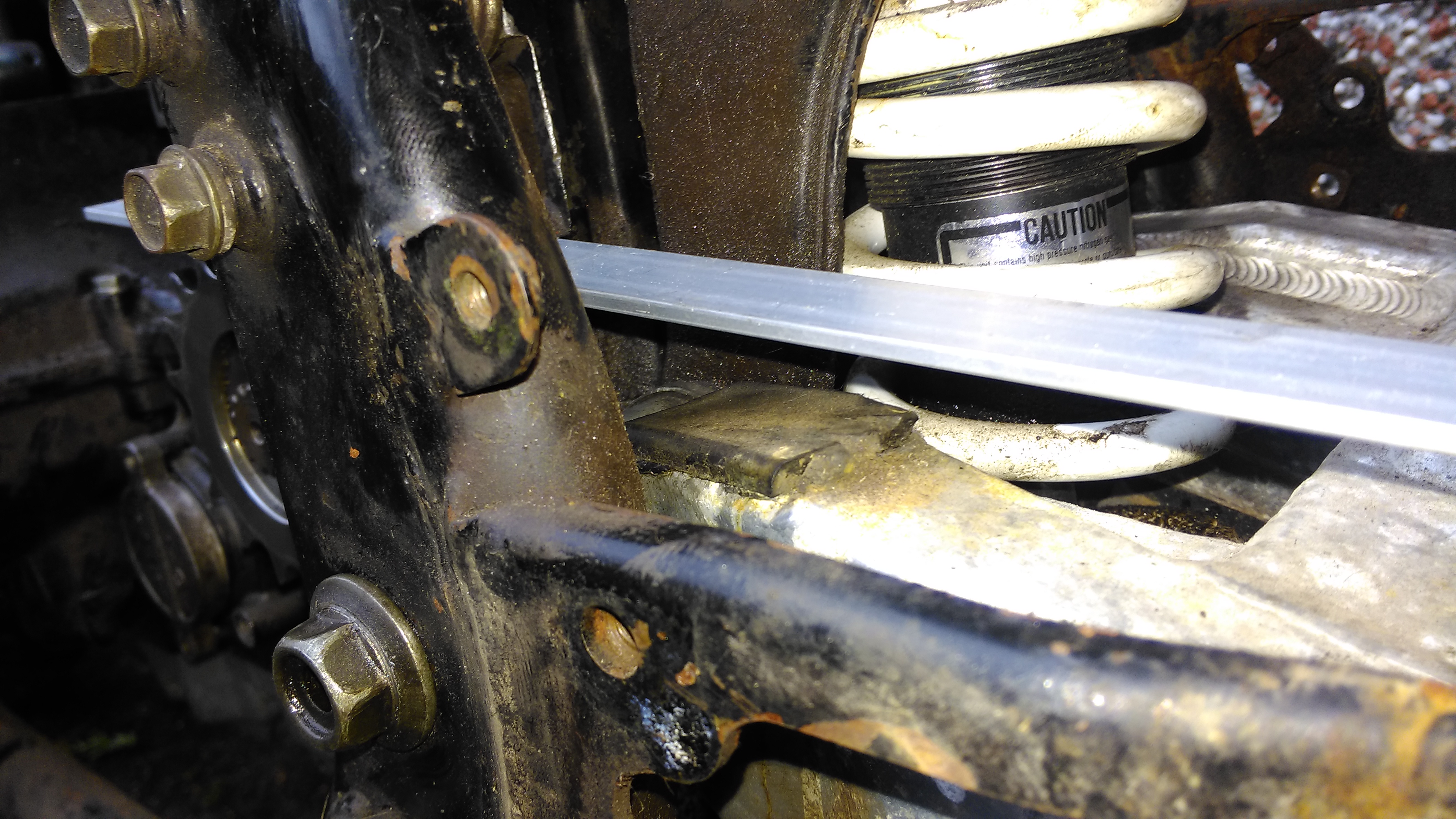 The other thing I noticed was that by being black it "disappeared" into the frame. That's to say you didn't notice it as it was the same colour as the frame. Maybe I'll spray the swingarm black instead of ally - that might work, but I'll see what the arm looks like once modified.
