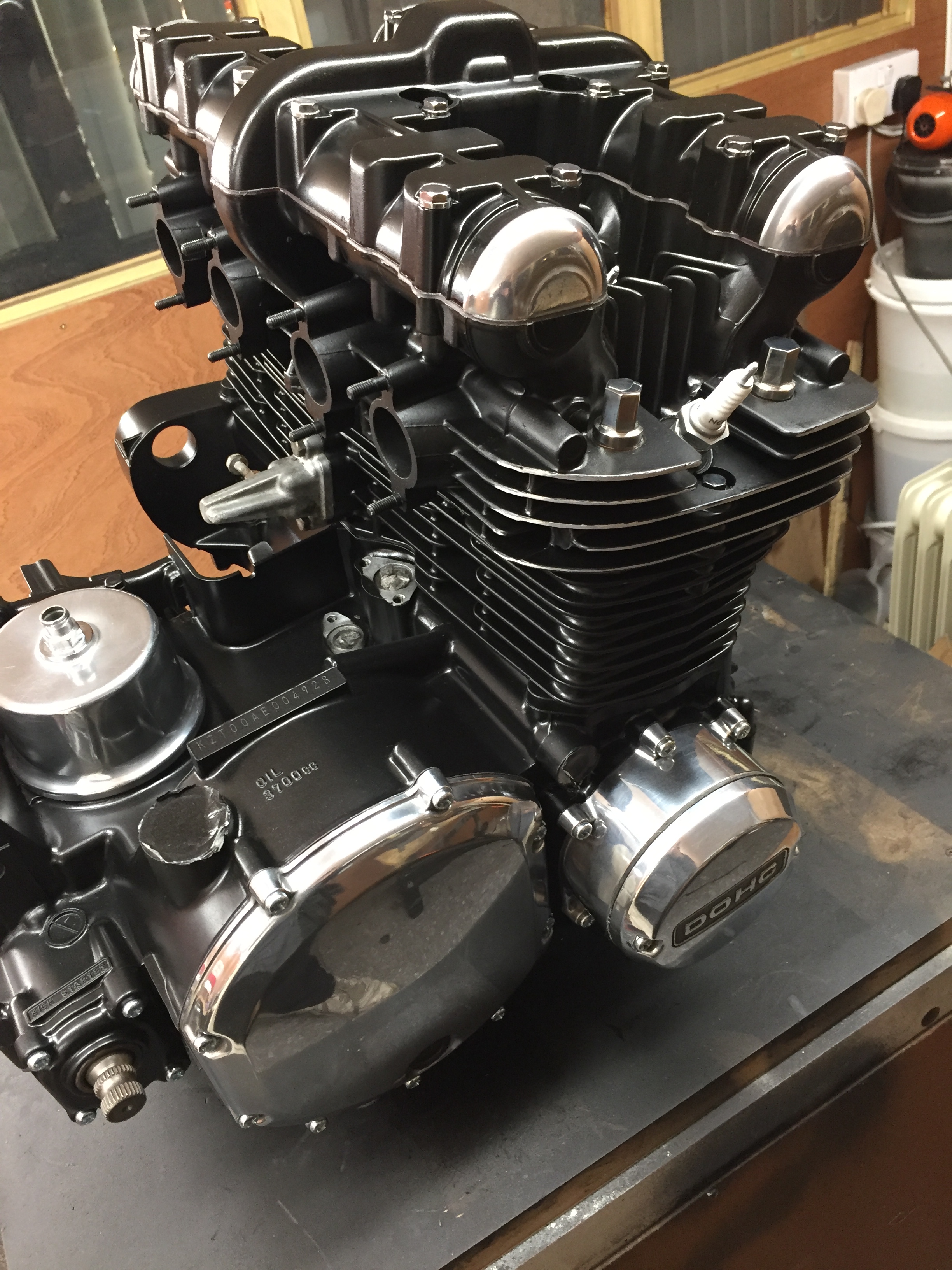 engine done, painted vht tough black, sump vapour blasted and covers polished up , clutch fine, no wear on bores or pistons, gave bores a slight hone , rings perfect -no blow back on pistons at all