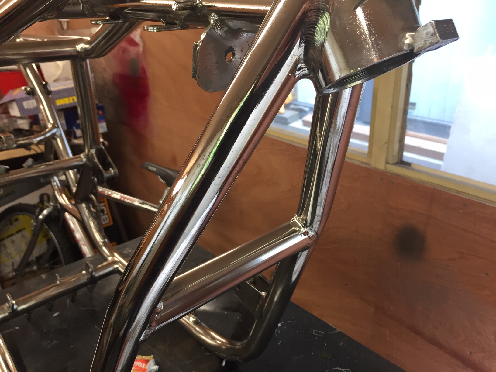 frame paint stripped 4 times.. and I will have a go machine polishing the frame with a drill and buffs, it looks shiny in the photo but not so great at this point in real life as I've tested a down tube and it came up really well- and use a nickel plate for the repair where the side stand was cut off