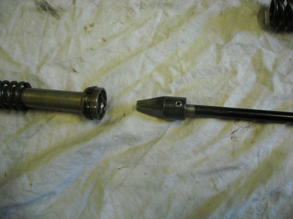 The bottom piston is held within the fork inner. There is a bronze sleeve / clip at the base which I presume holds the two together. There is , what feels like a spring inside working in the same fashion as the original.