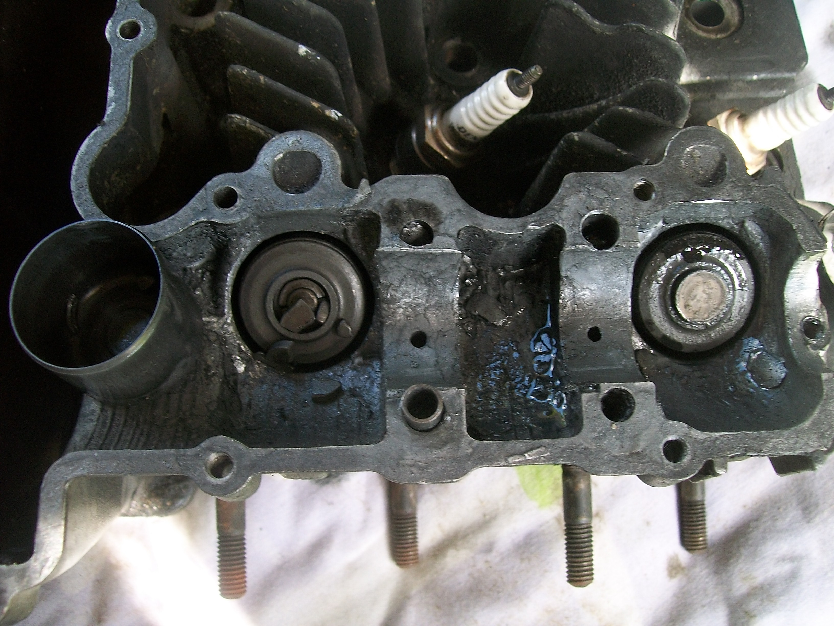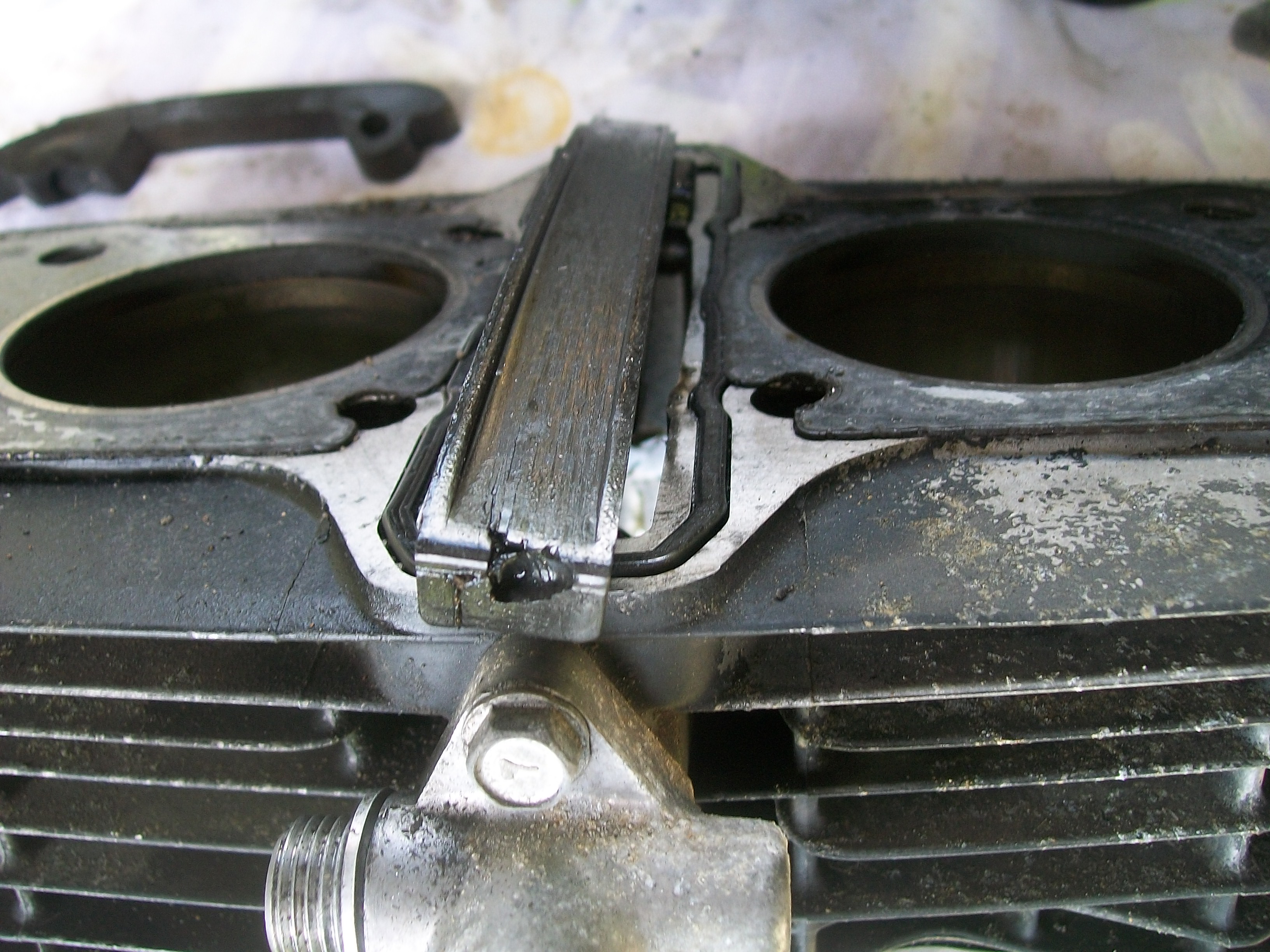 The front and rear cam chain guides are very worn. It looks like tensioner has been overdone looking at the rear