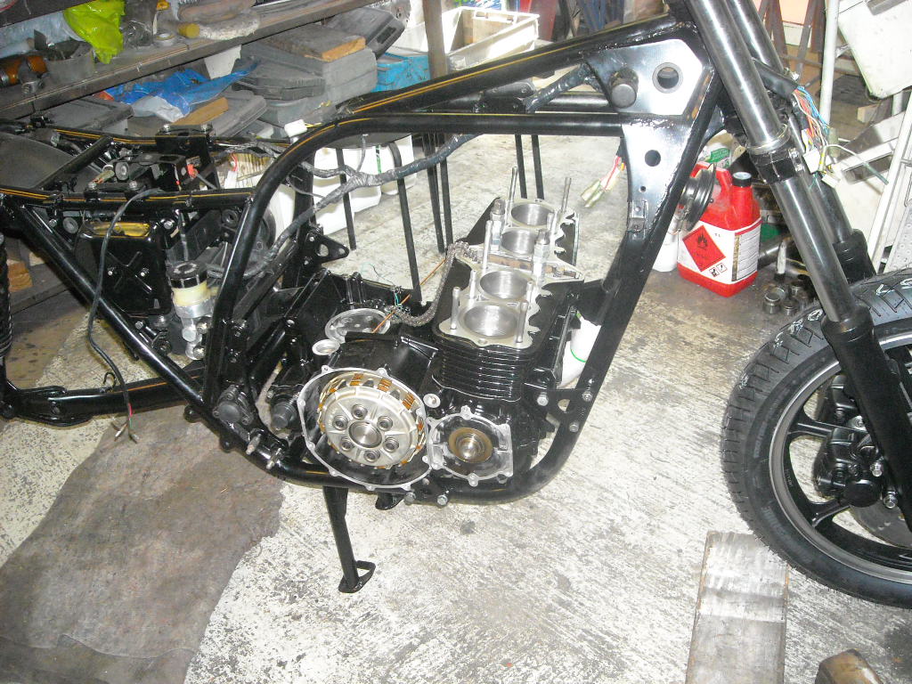 After mounting the pistons in the cylinders, the engine was mounted in the frame