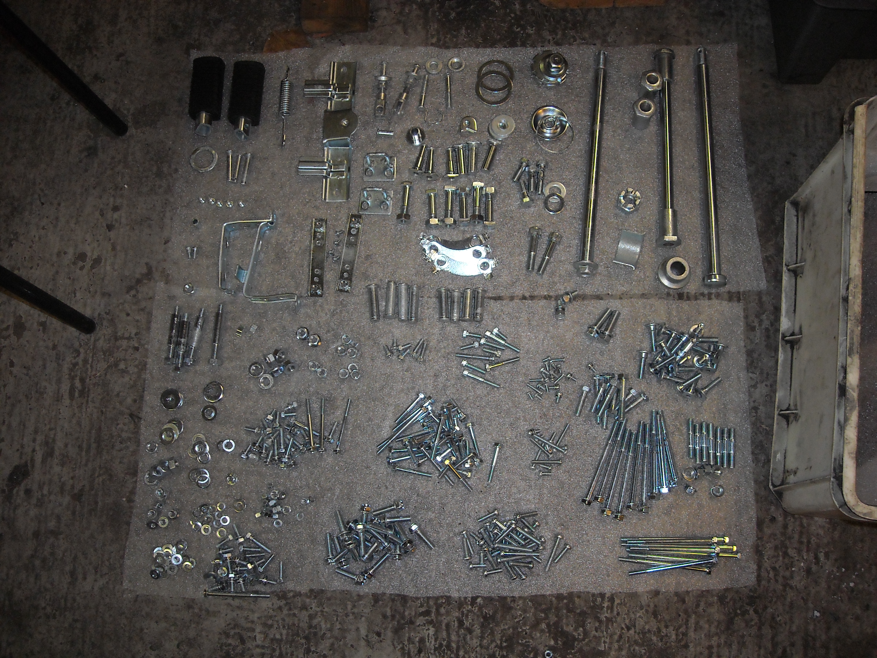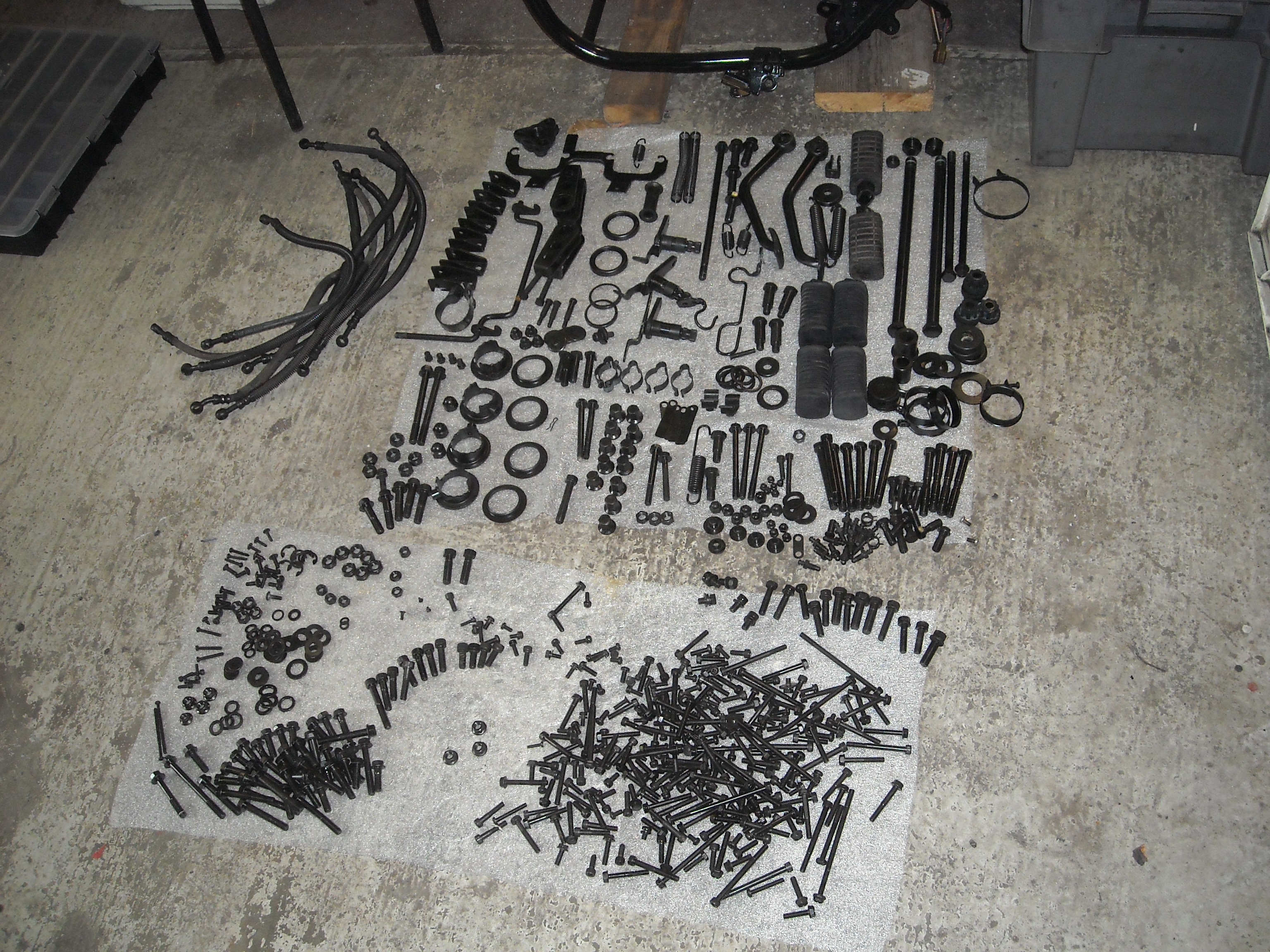 I couldn't continue because I had to wait for a lot of bolts, nuts and frame parts to be rezingued black and gray.