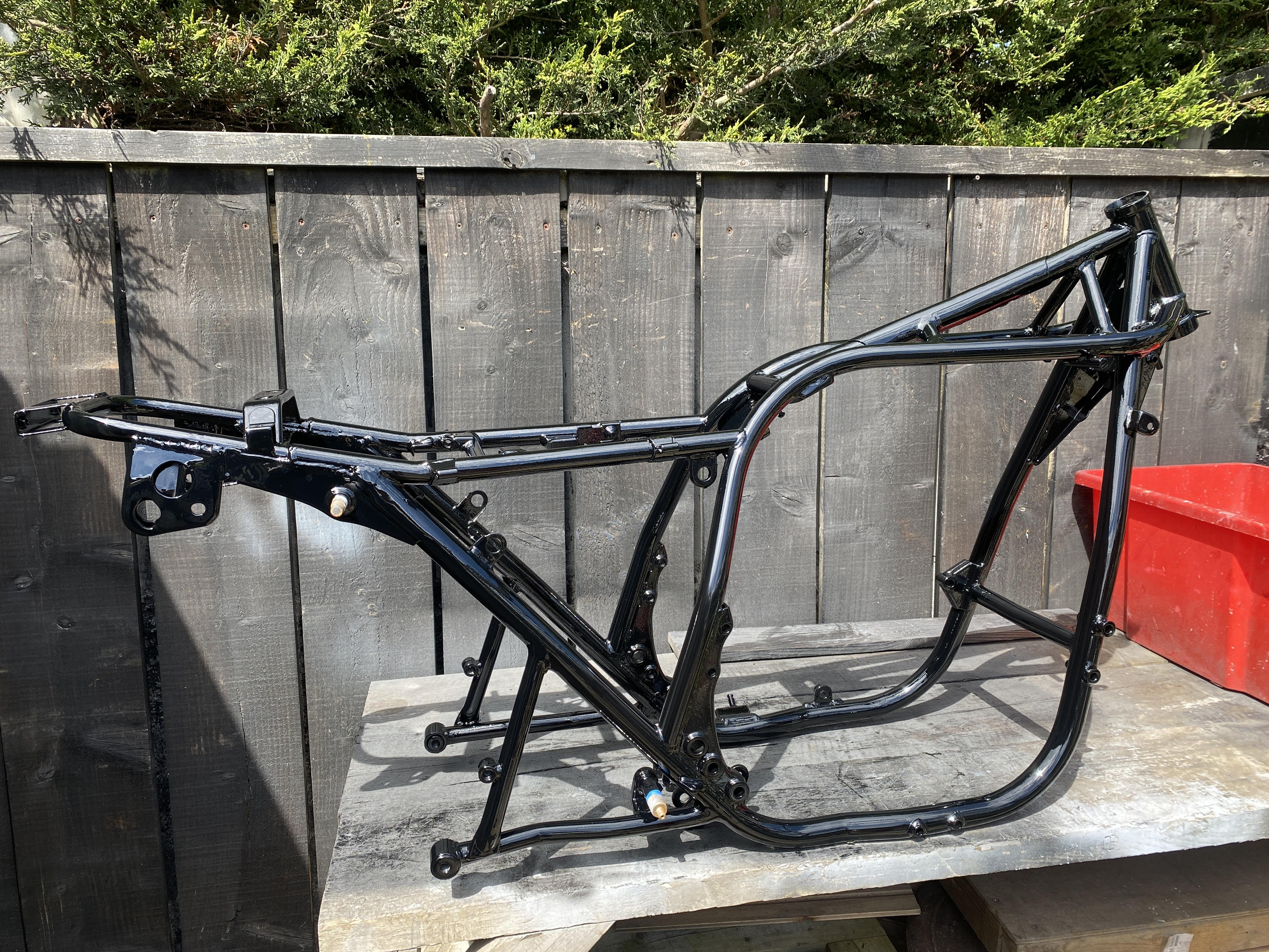 So frame is good as done, 2k gloss black on powder coat with an adhesion promoter in between, should be good for another few years.
