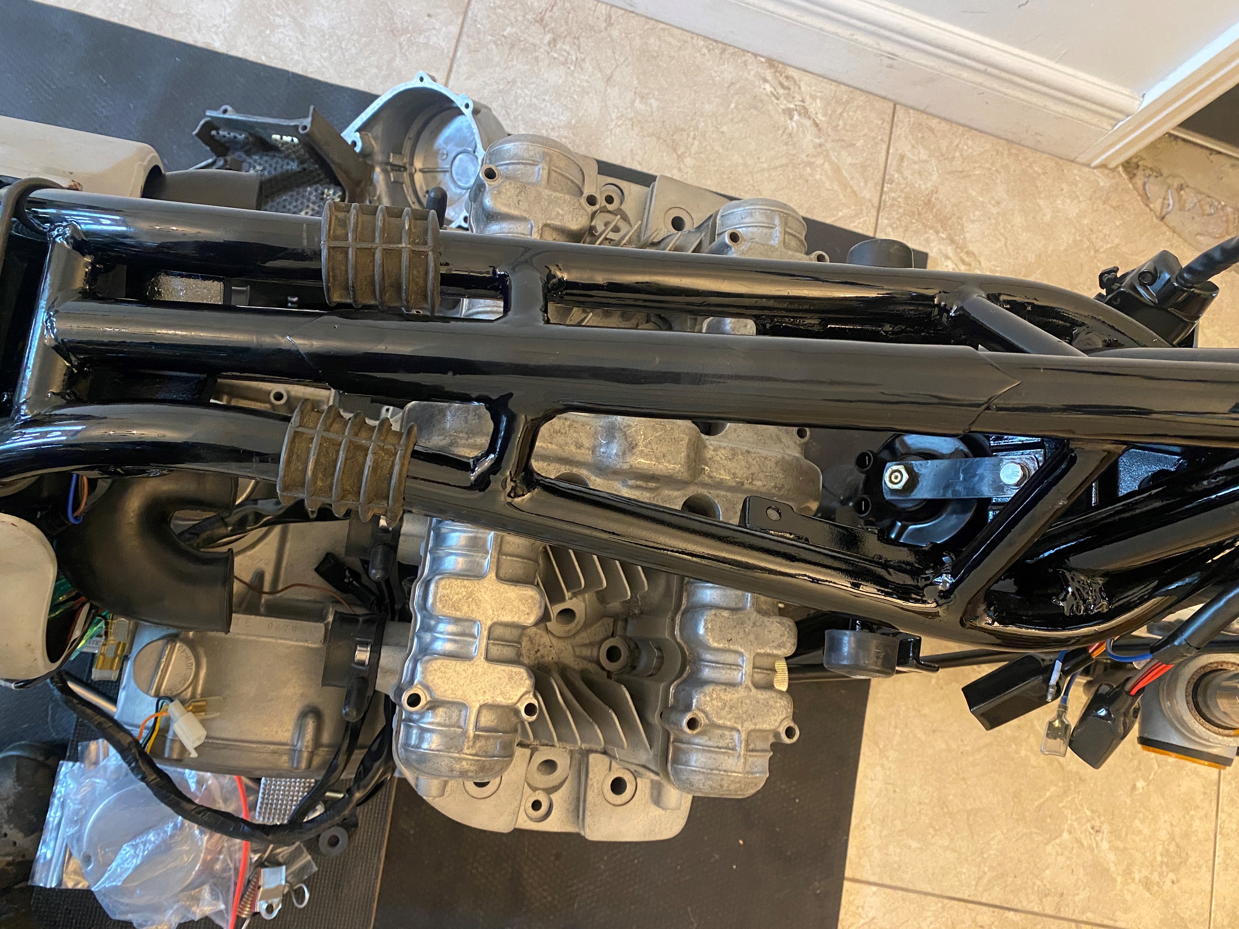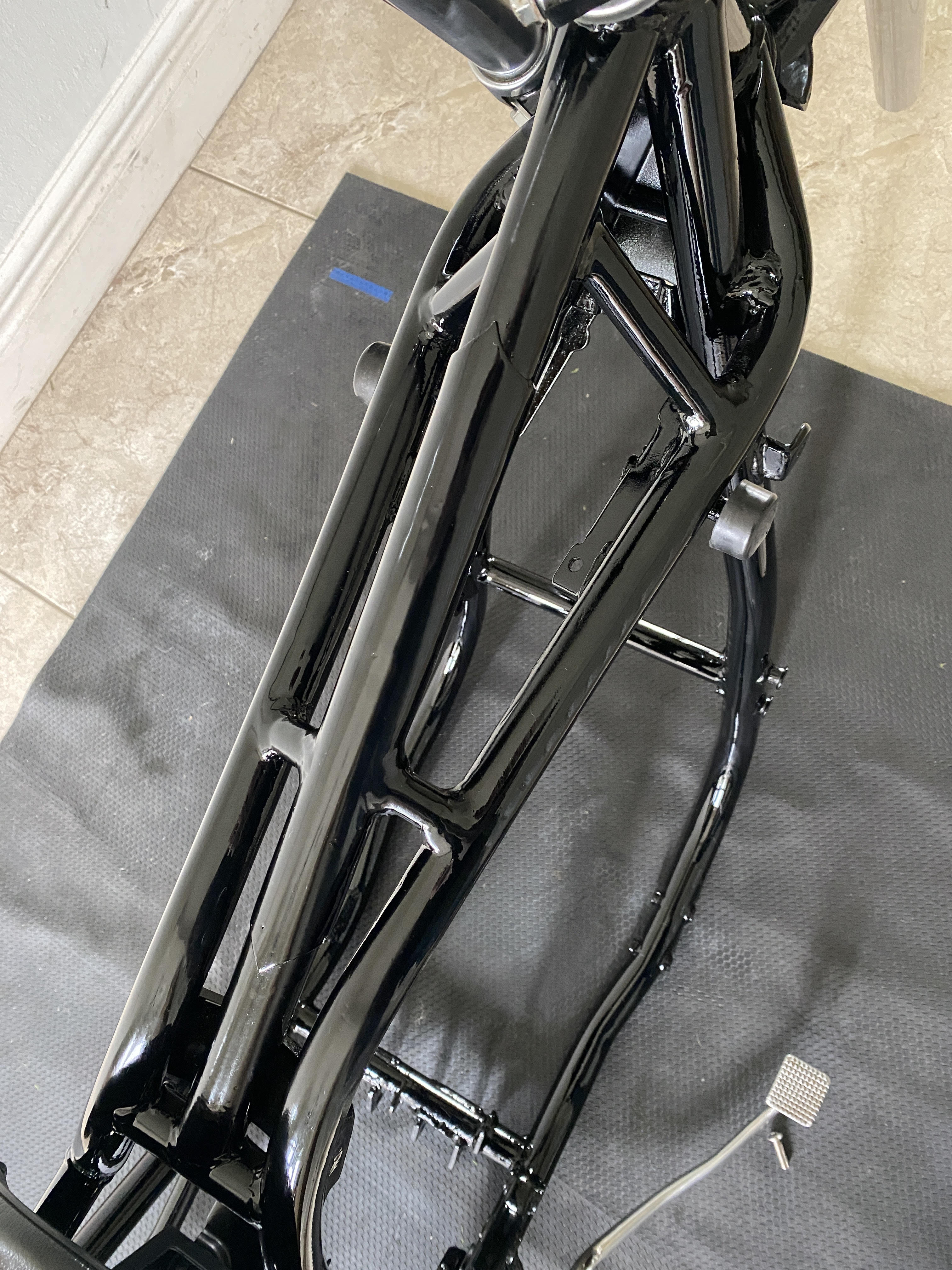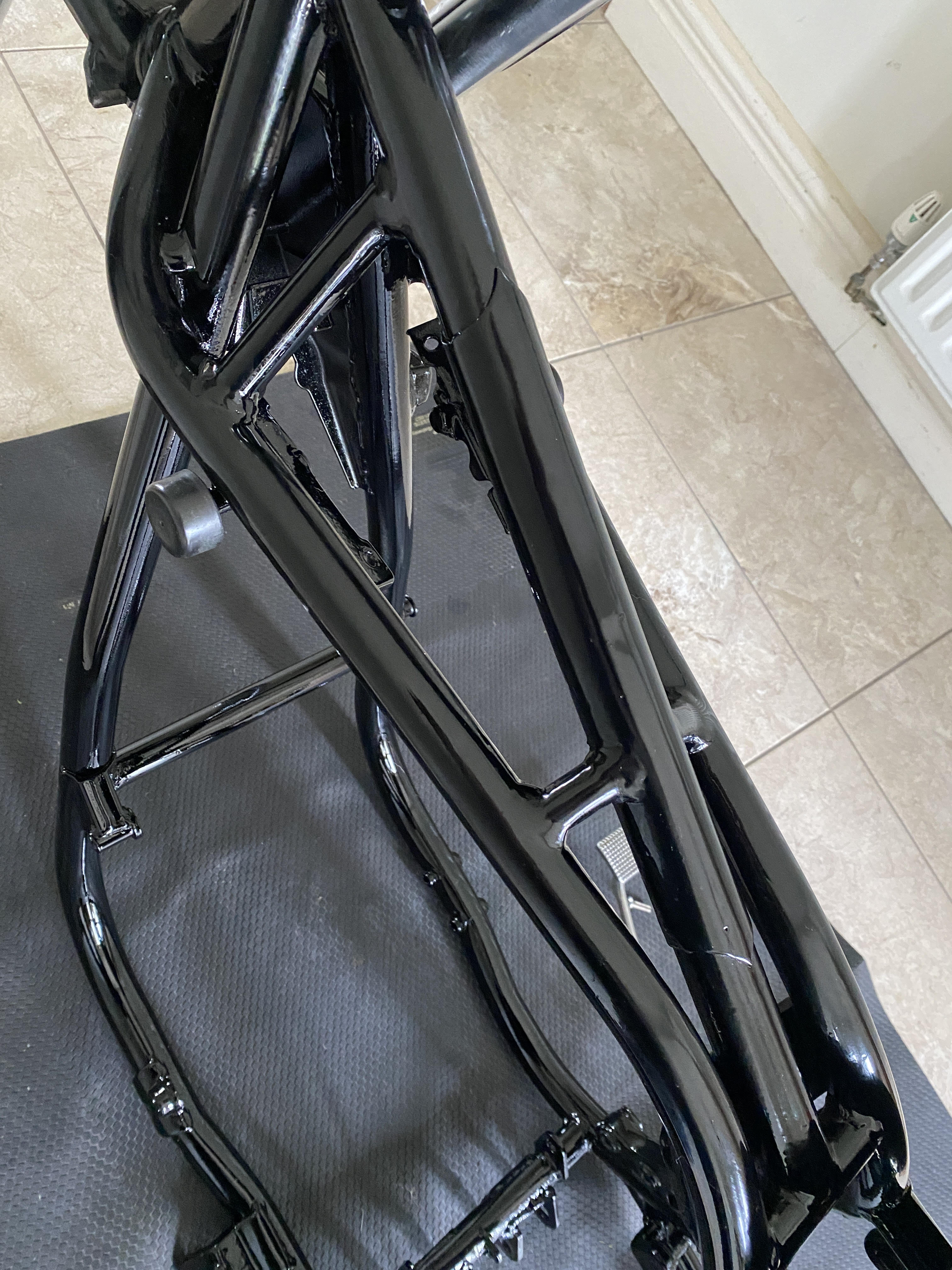 So im fairly happy witht he way bracing on the frame turned out after paint, kinda looks like the bracing on the down tubes of a Z1r, nearly looks like its meant to be that way but not quite.