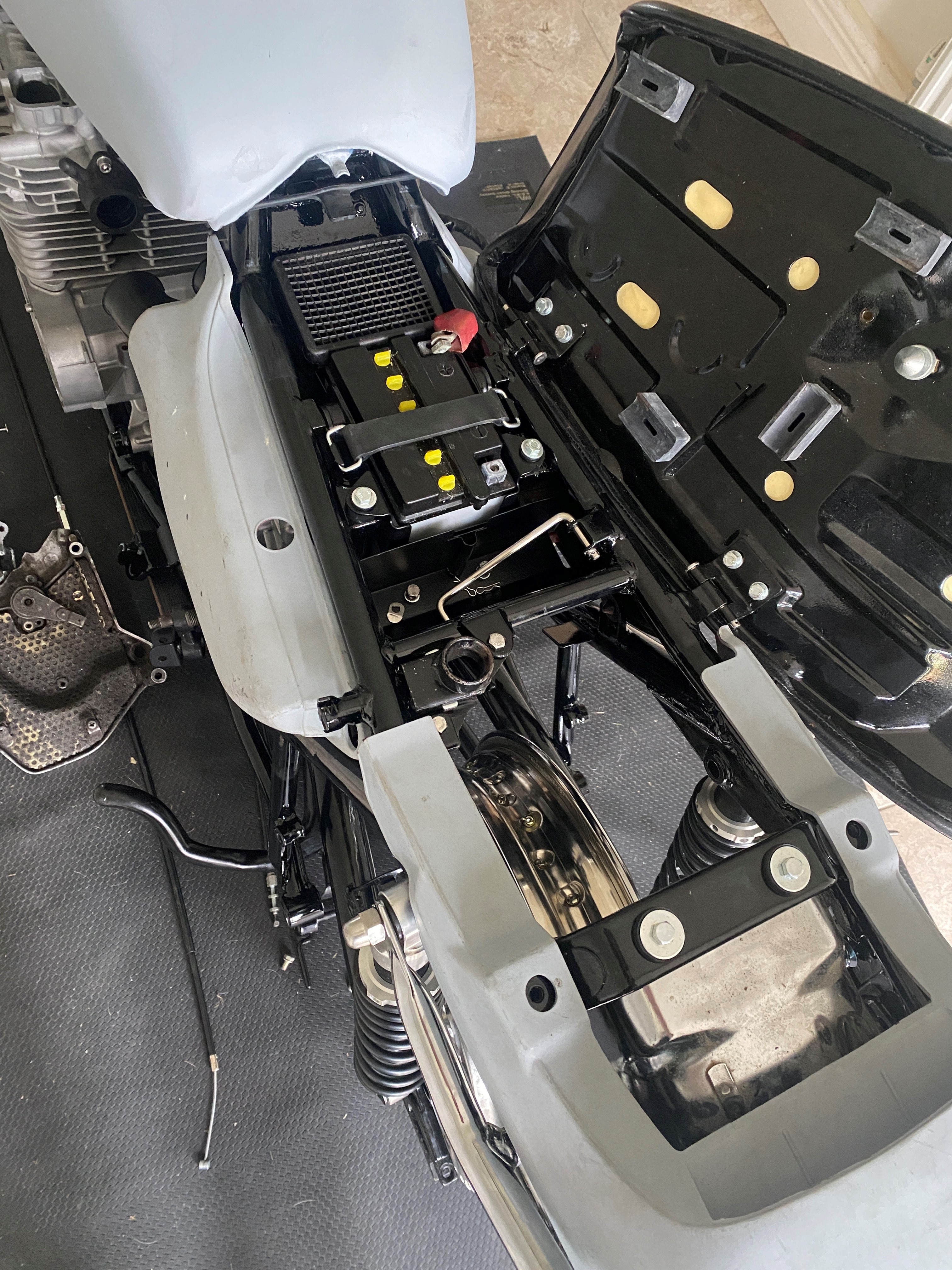 Maybe if the rain stops for a few days ill do the paint work, while i have an extractor fan paint booth it pulls air from outside and there is just too much moisture in the air right now. The Gusseting on the frame is slow dispersing into the backround, well to my eyes anyways.