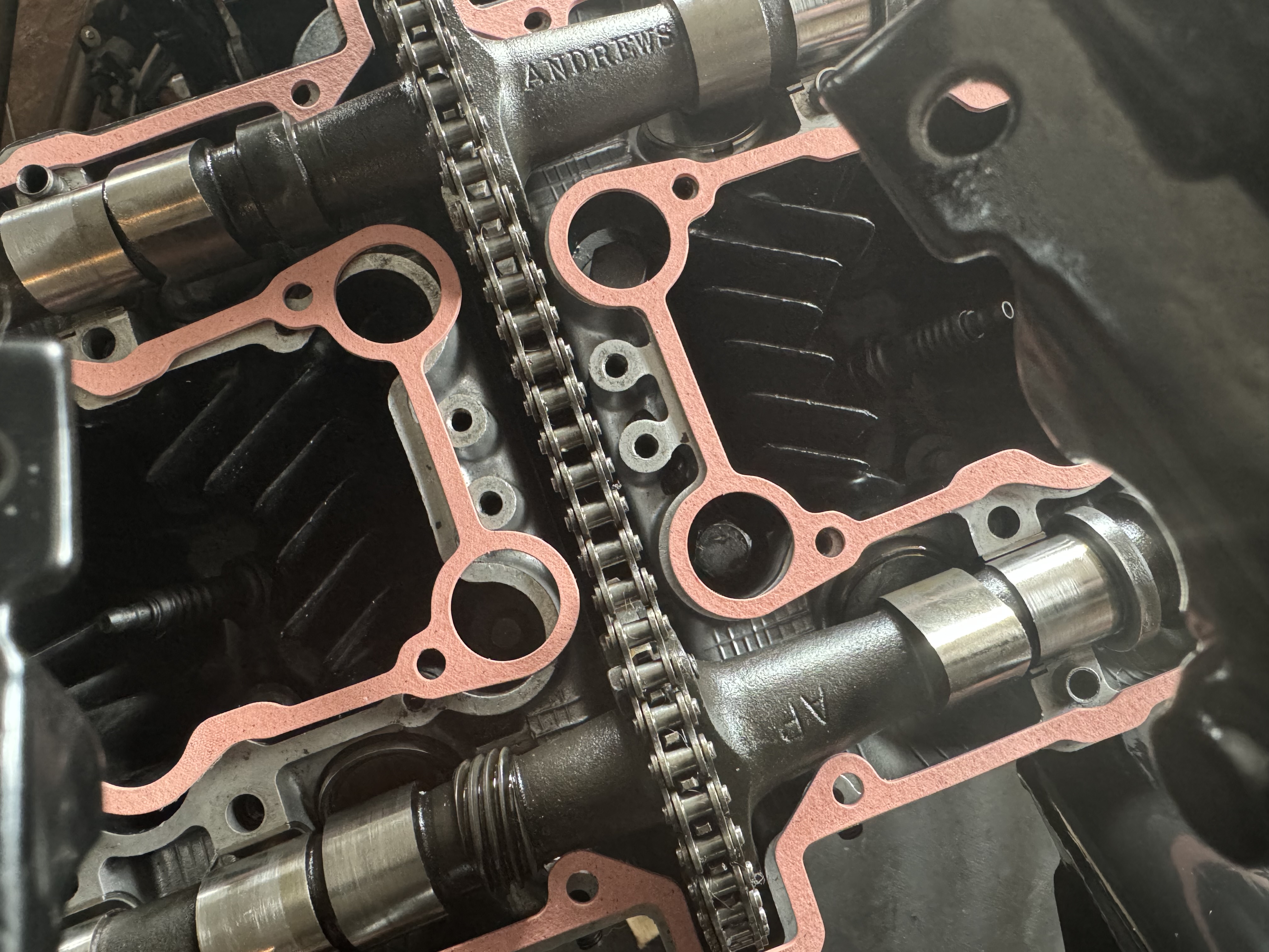 Engine is in the frame now, Wiseco 72mm gasket. Andrew’s cams and upgraded the cam chain, idlers and tensioners and Andrew’s cams. I’ll set the timing and finish off tomorrow.