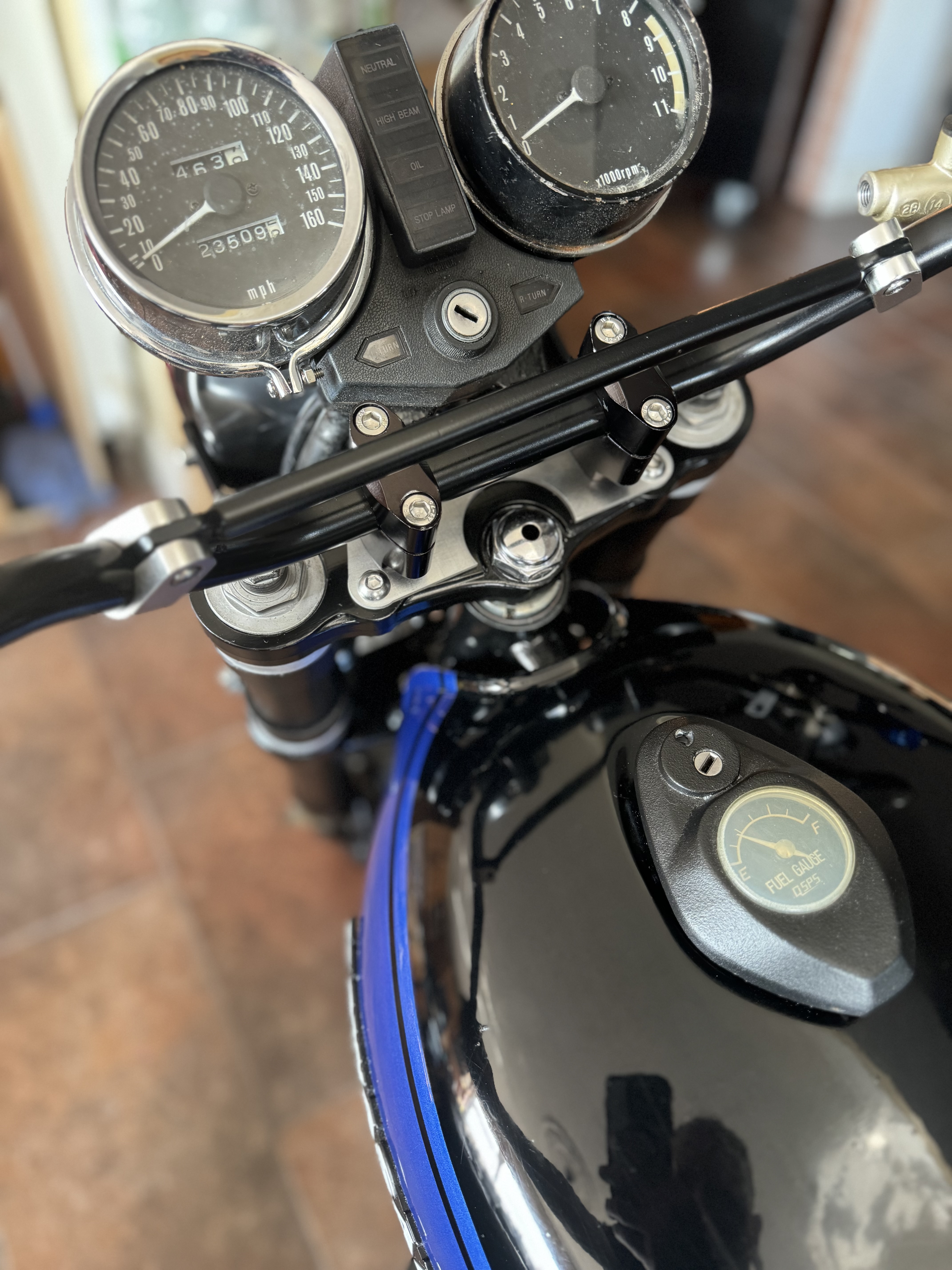 I could have f*cked around with offsets but i want a rideable bike and the Gsxr1100 had a speedo spindle so i can run a standard Z speedo off it if i leave it as is..and sure you can barley see it when the bike is whole. its my 2nd build with the same style tank and a third to come soon.... i kinda like it.