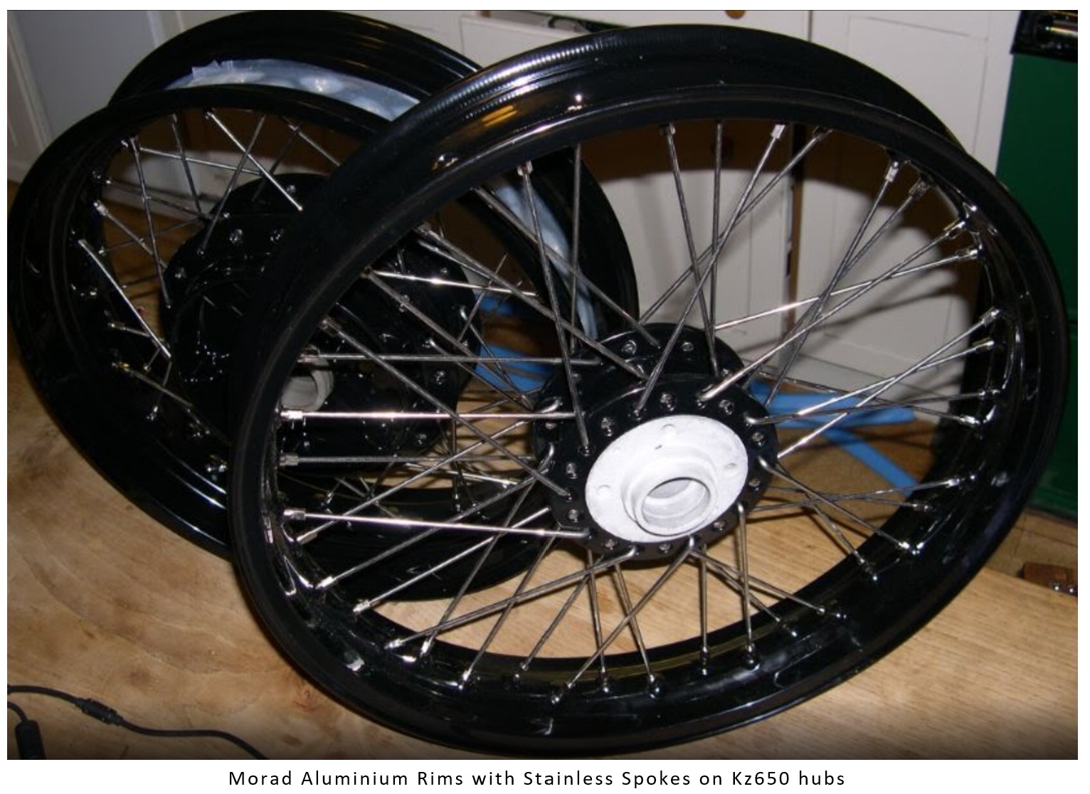 Lacing them to the retained original Kz650 front and rear hubs was uncomplicated- the hubs' spoke flanges aligned well with the new rims, and I used stainless steel spokes for corrosion resistance and durability.