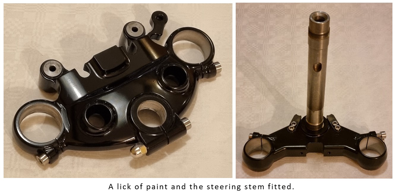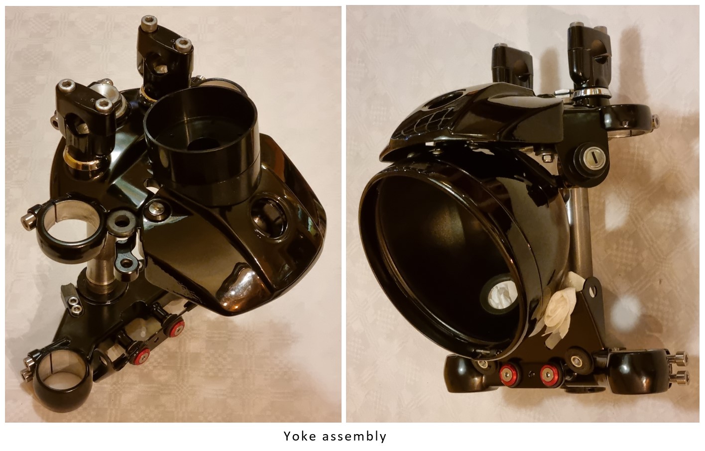 With the yokes painted, I carried out a full test assembly of the yokes with all the related components to confirm everything fitted and functioned as expected. There is a great deal going on in that area—and the yokes turned out to be the second most expensive single component on the entire bike.
