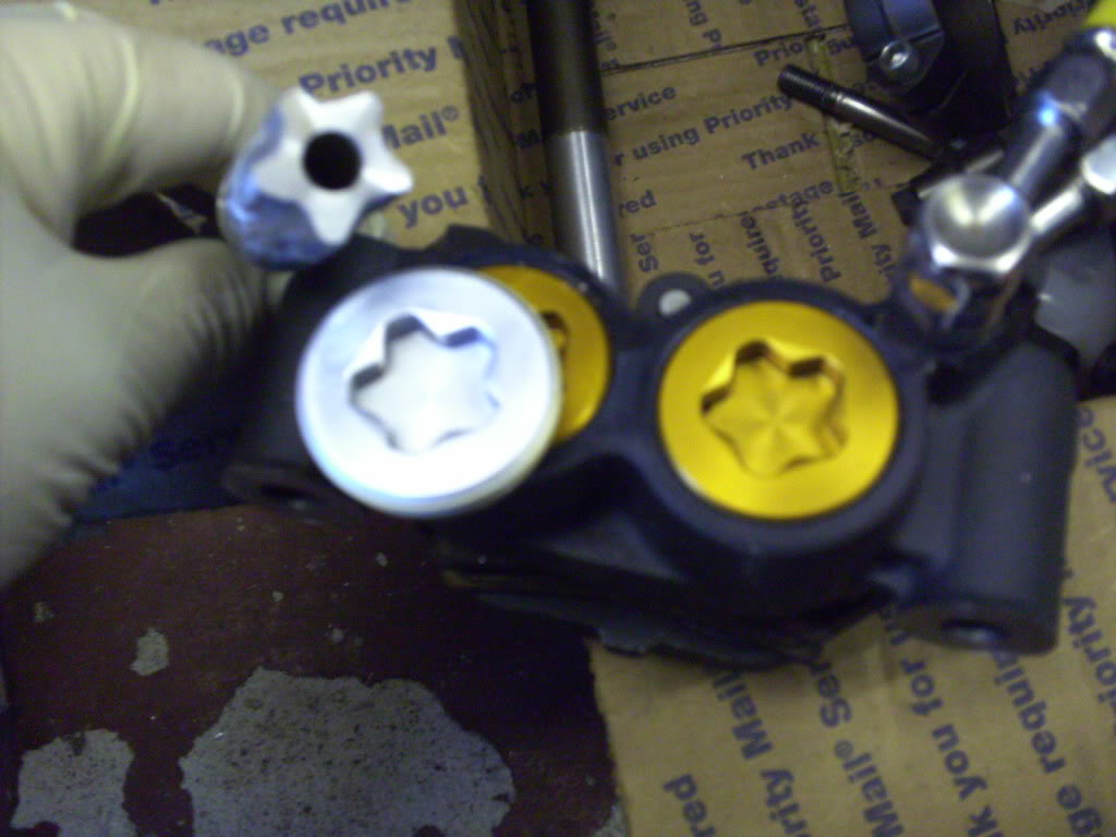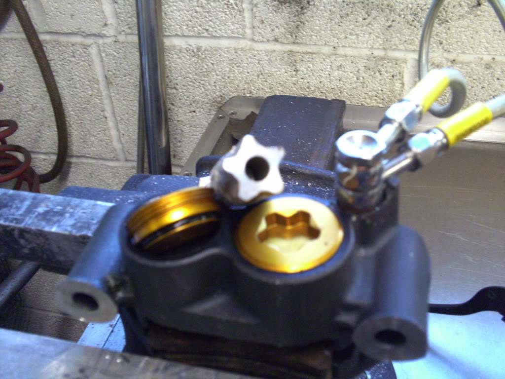 Pretty sure the grey finish on the calipers is anno too so not wanting to risk taking any of that off i knocked up a five sided tool to unscrew the gold stars