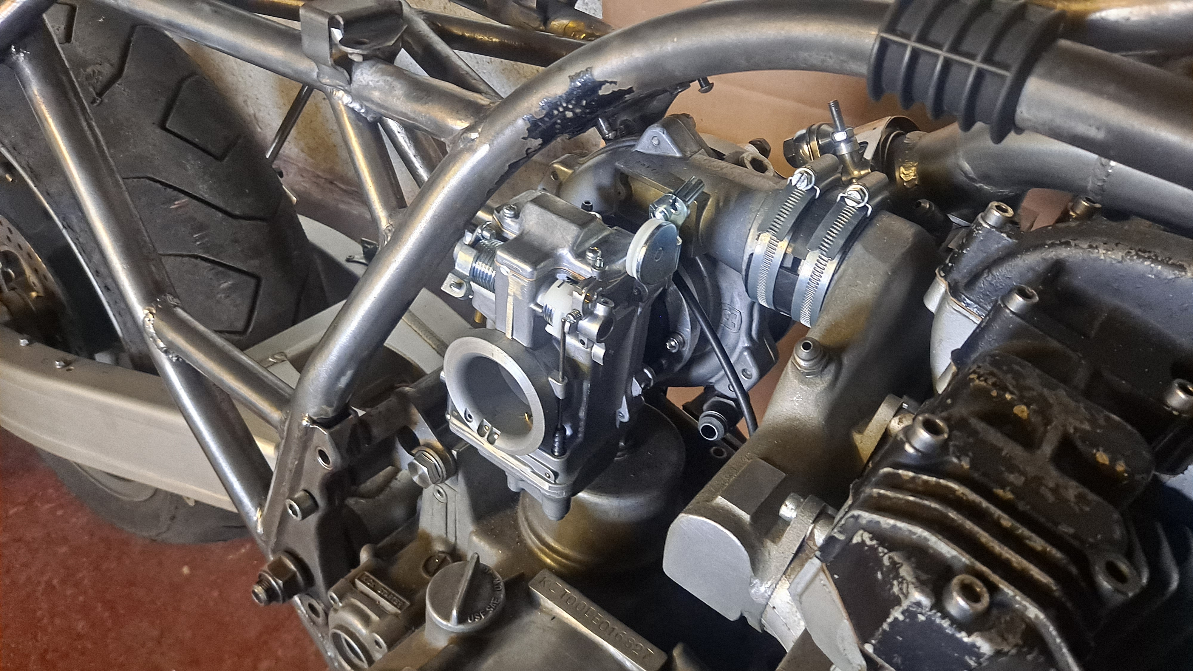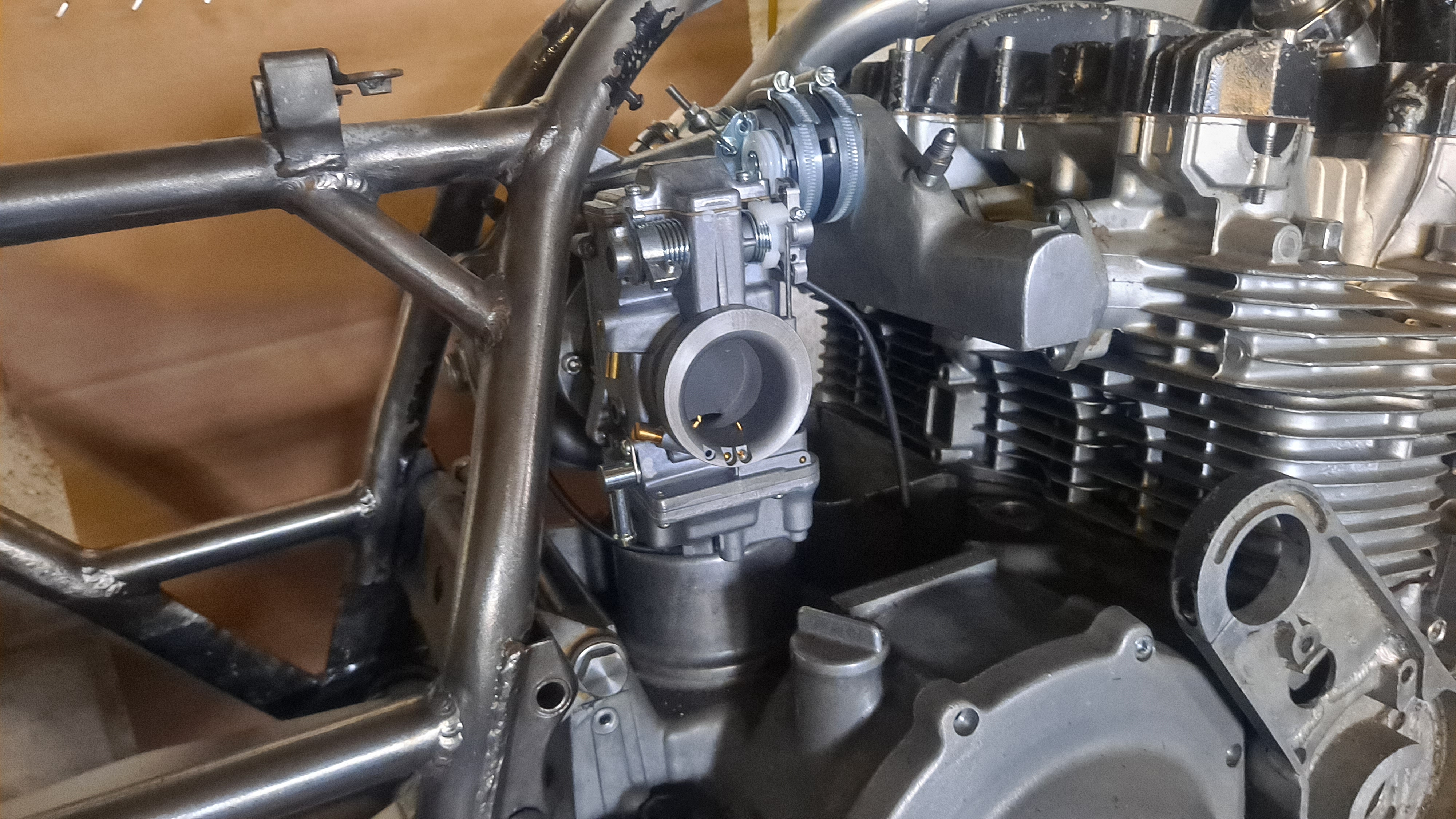 And then back on the bike with the carb for mock up to check clearance for fuel tap and cables etc .