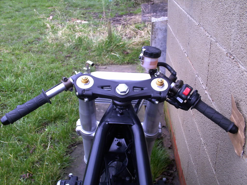 Front end got the bars fitted and controls . R1 starter/kill switch now serves as Horn and kill.