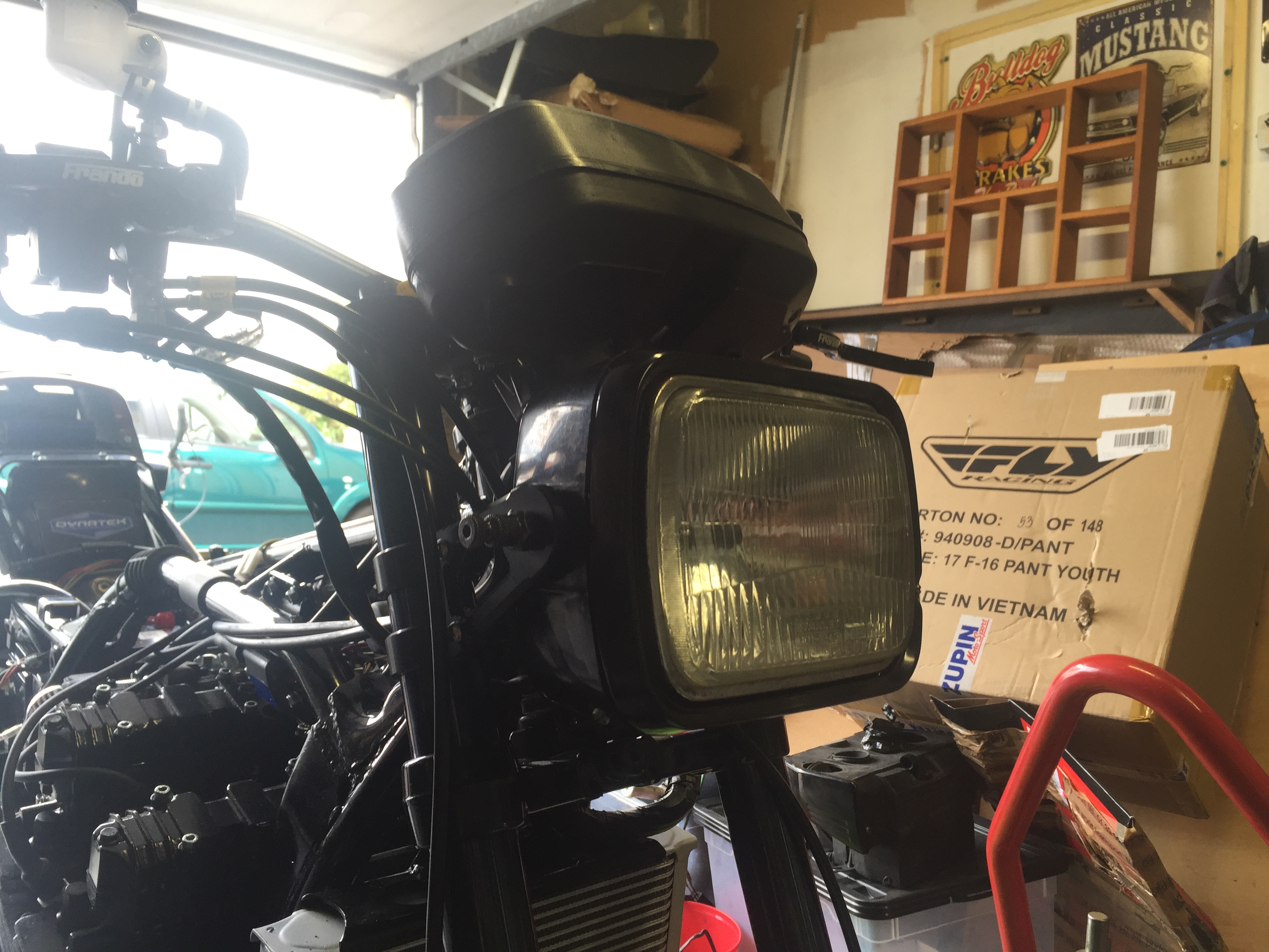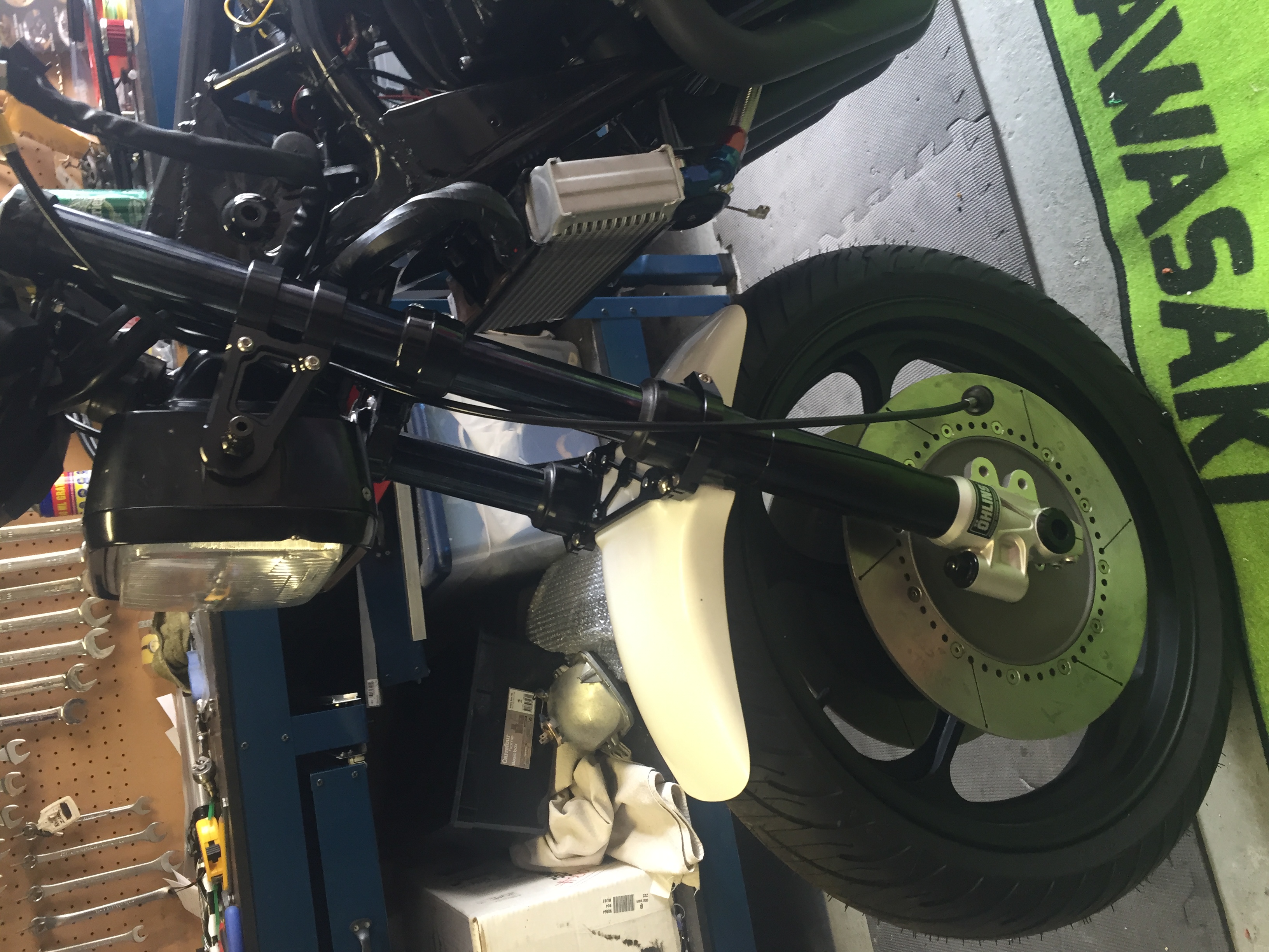 Got changed over to the square headlight (thanks GB) and fitted a NOS rim I picked up. Some PMC headlight mounts which are rather nice from Dave.