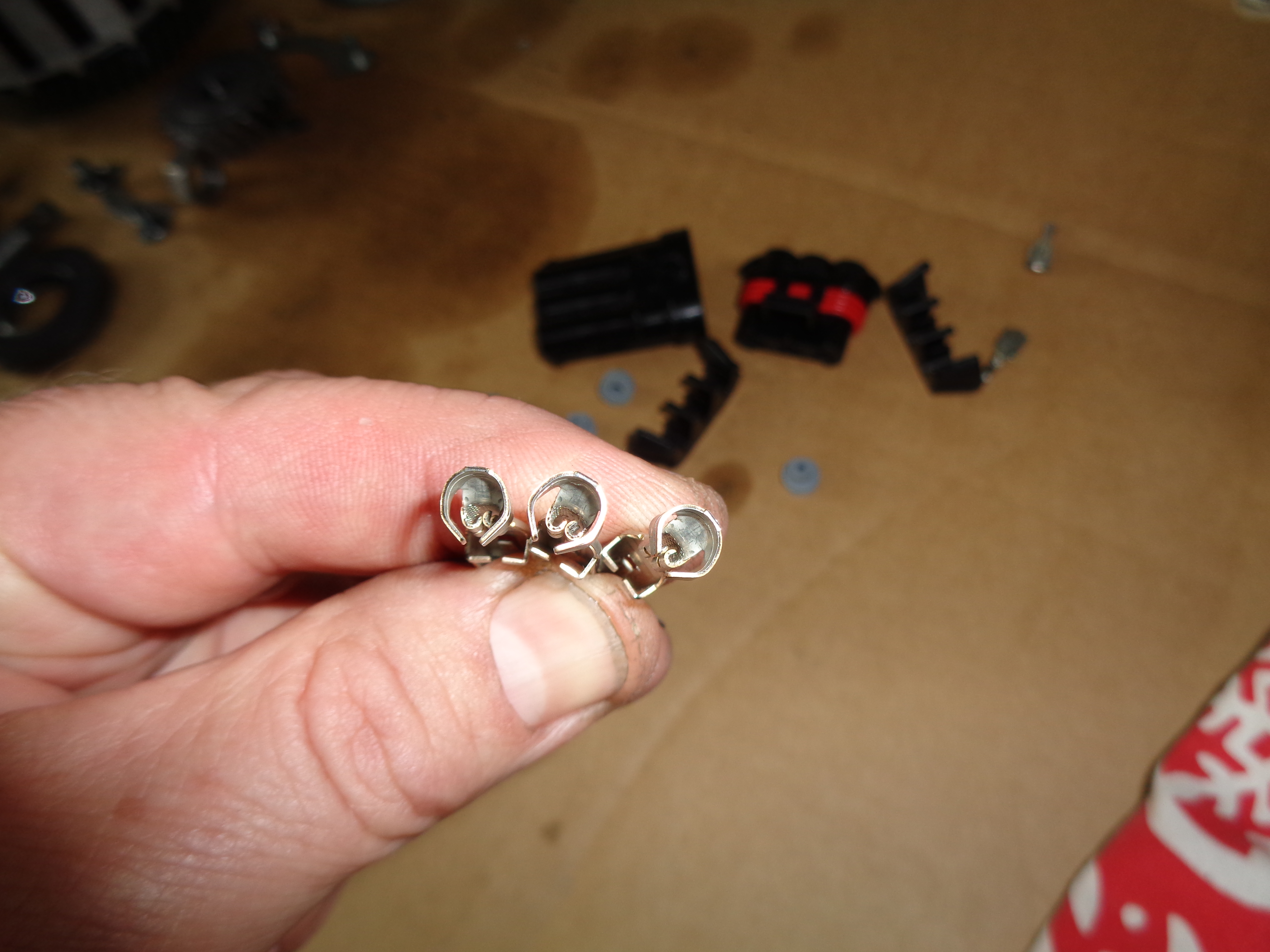 I don't have the correct crimp tool for those waterproof connectors so fitted a normal three way spade block.
