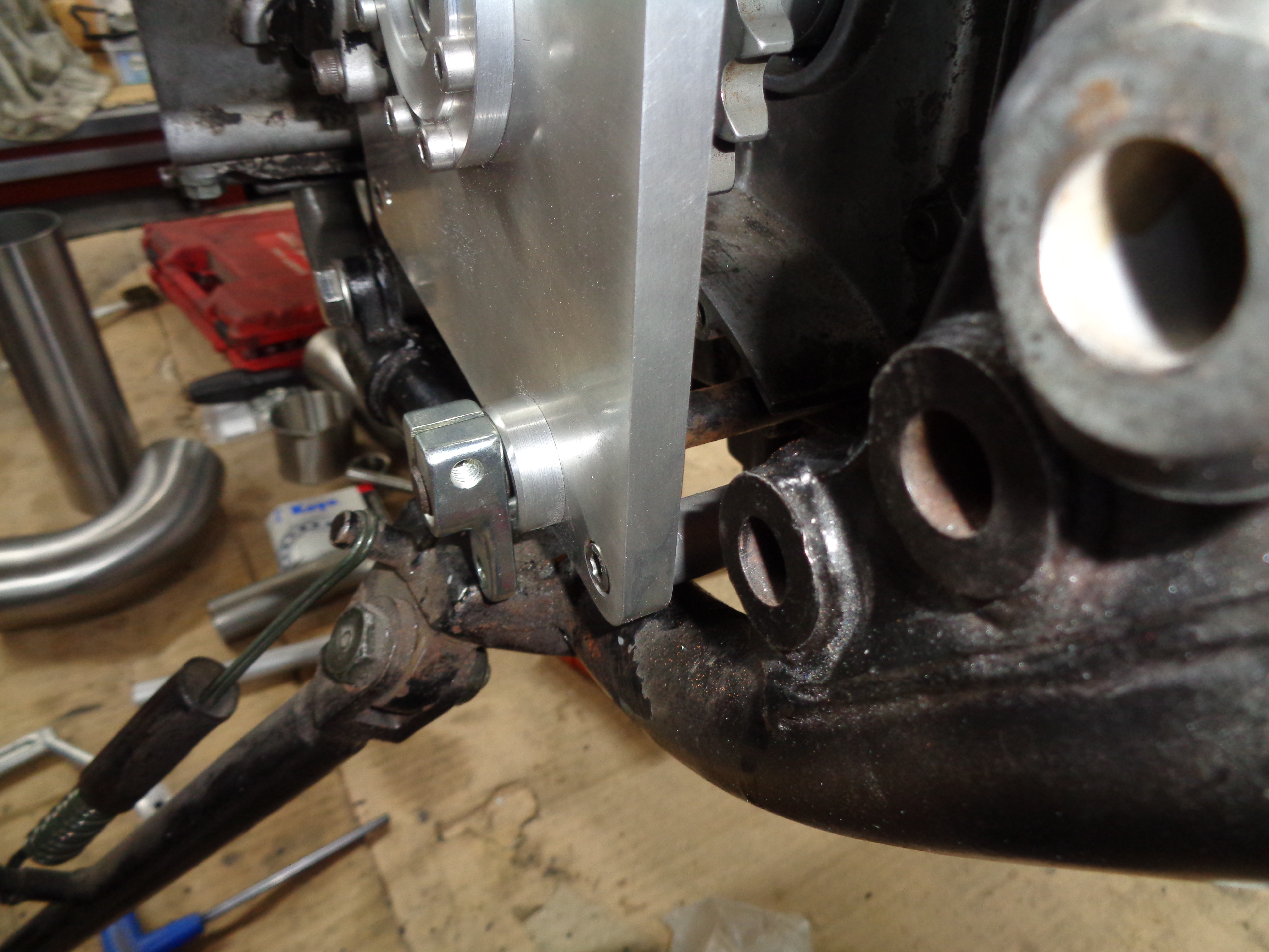 After which the two were linked together via a suitable hanger made from 6mm aluminium with a couple of angled holes to suit the Z1R's styling milled in for lightness.