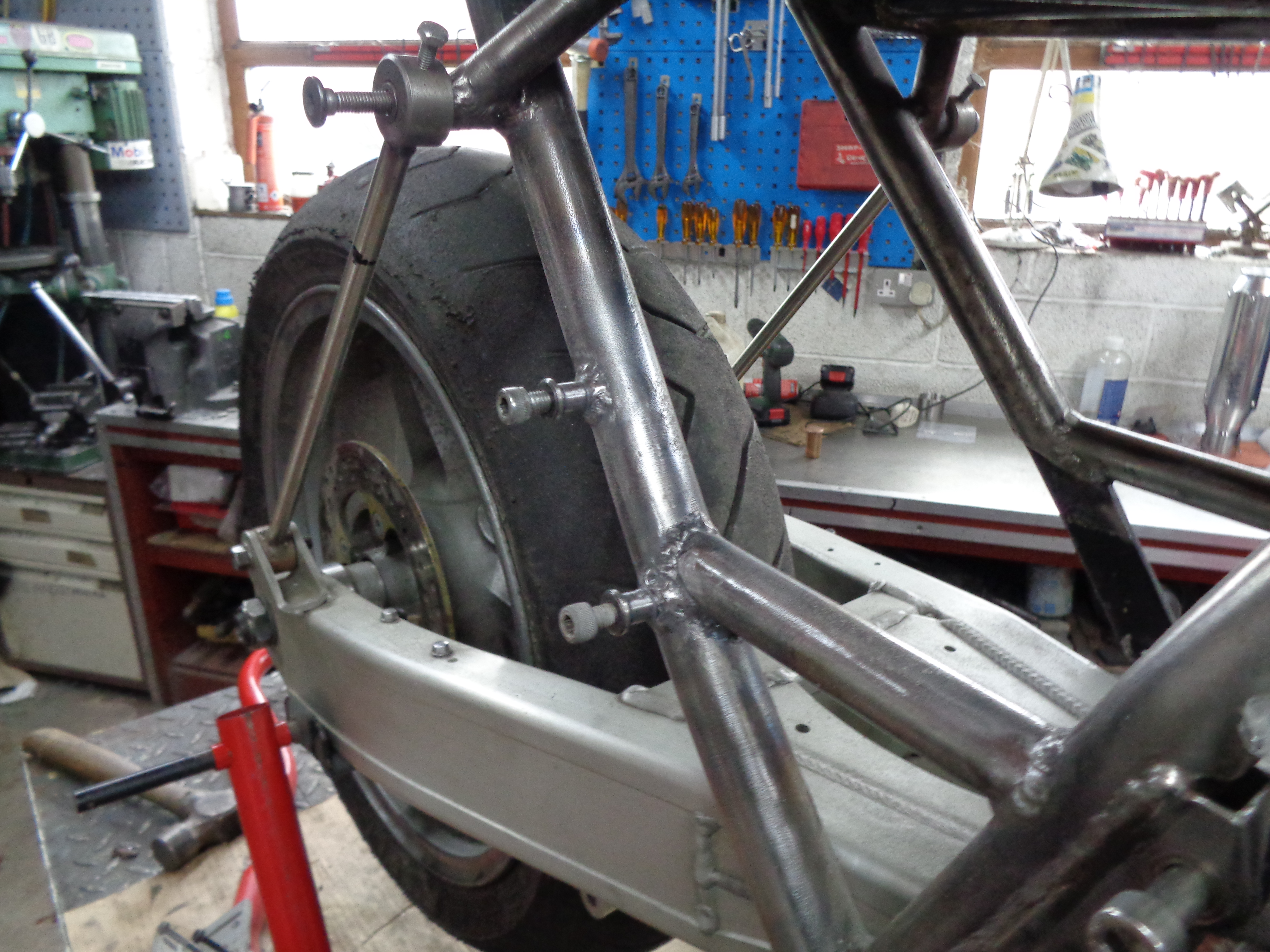 Started with welding some threaded stubs on the frame the same as i did with the racecrafters.