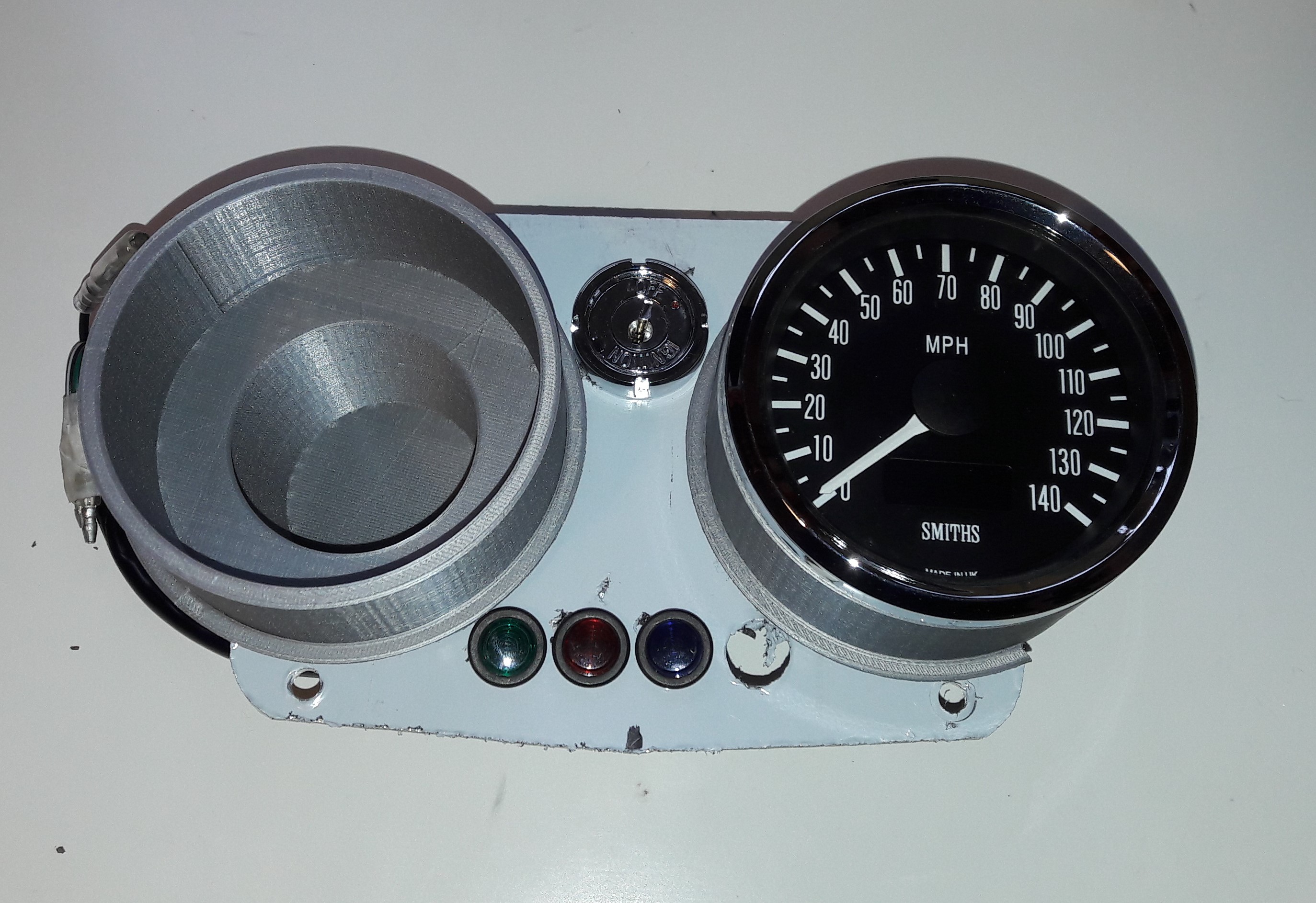 I've recently found that 3D printing has been helpful for making prototype parts and also a few final parts, such as the instrument pods. The following series of pictures show the process I've been through trying to create a new instrument console what will use new electronic clocks, but also trying to keep the spirit of the Z1 incorporated in the finished article. This is a work in progress, pods still need painting and the aluminium clock holder still has its white protective film keeping the brushed aluminium surface scratch free at this stage.