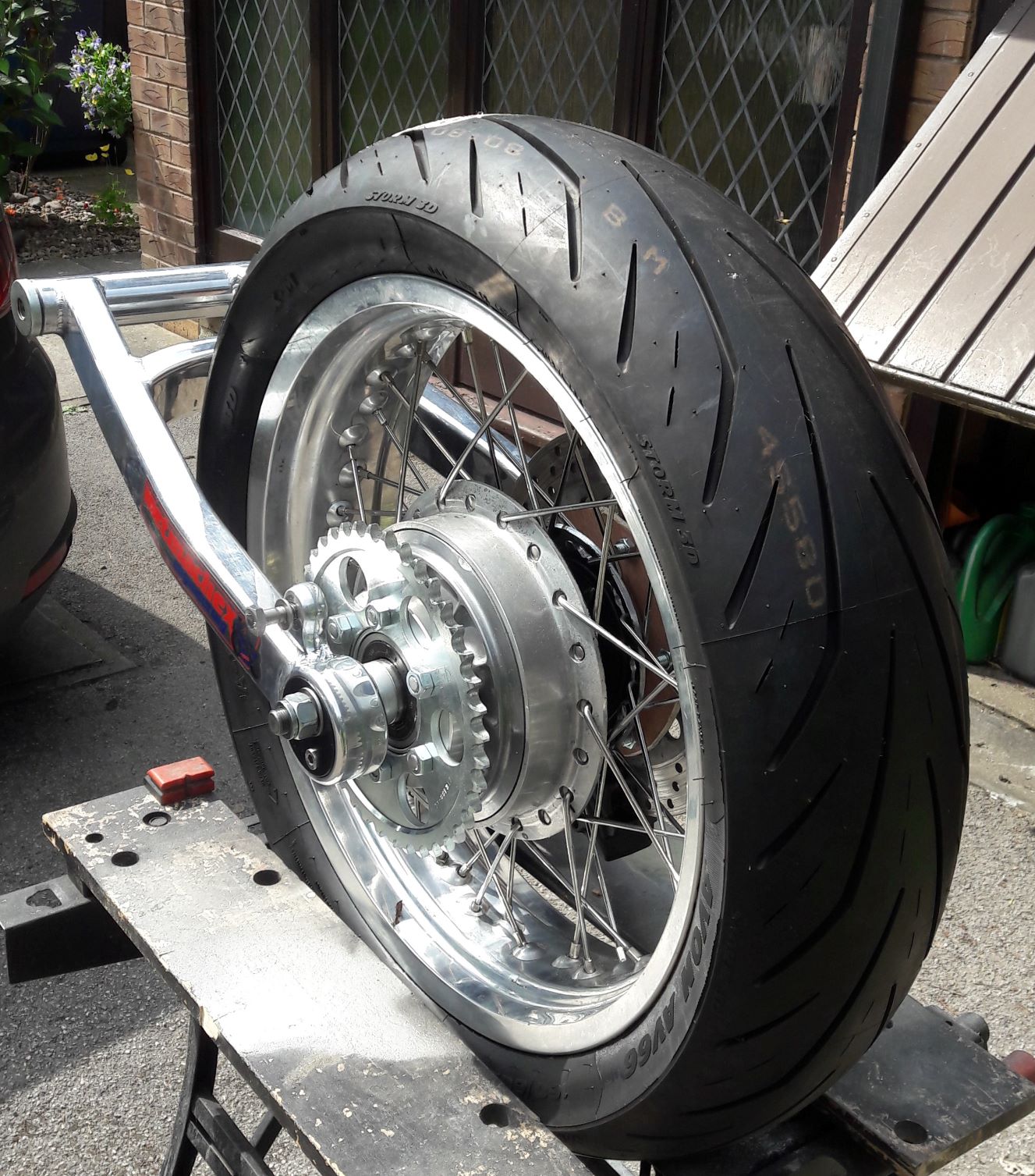Looks great, what gap have you got in that swingarm, I've a davida and on first assessment a 4 1/2" wheel with 160 tyre wont fit