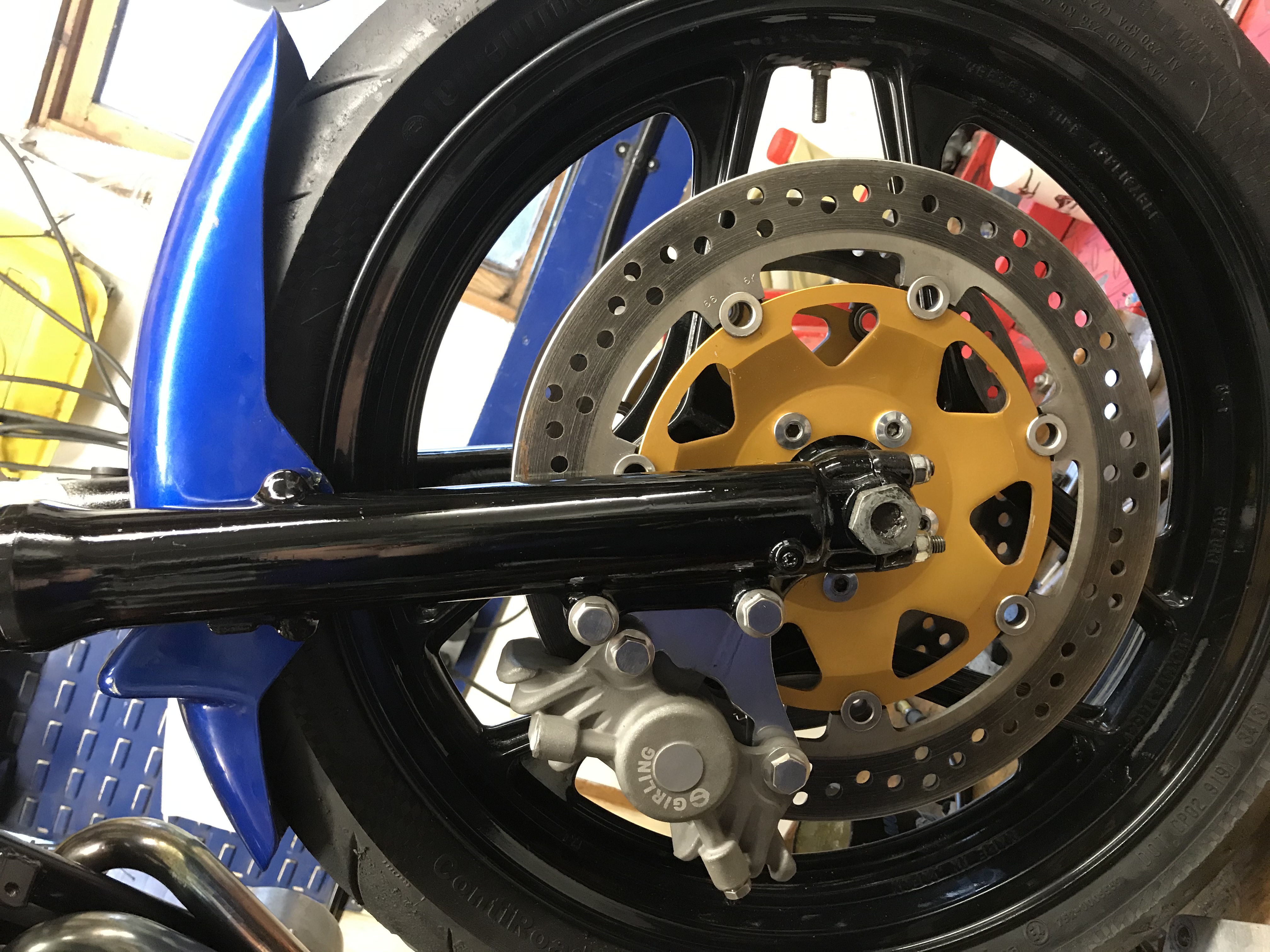 Minor set back with the 310 gold discs as I was not happy with the clearance, so swapped them out for zx6r discs.