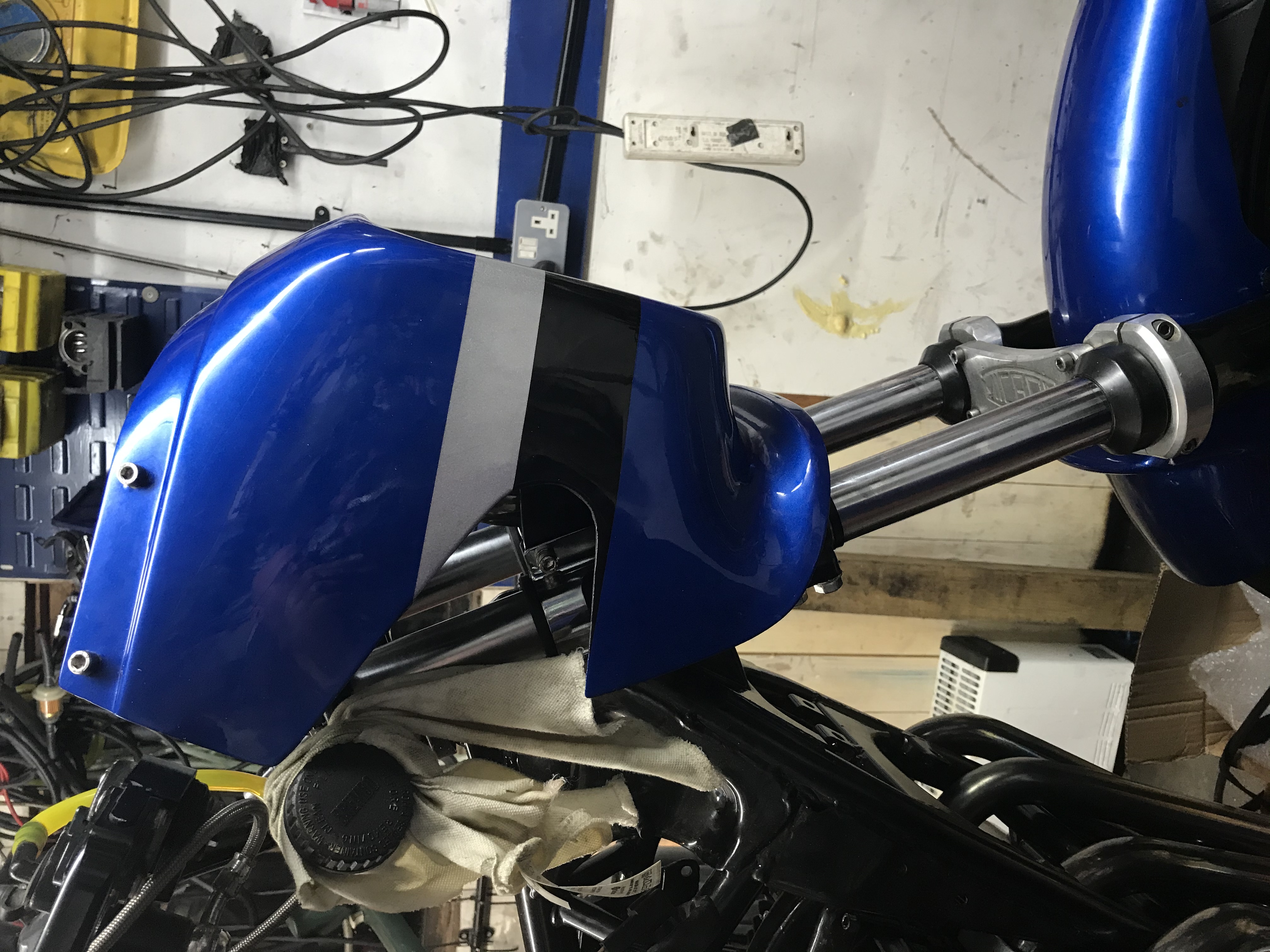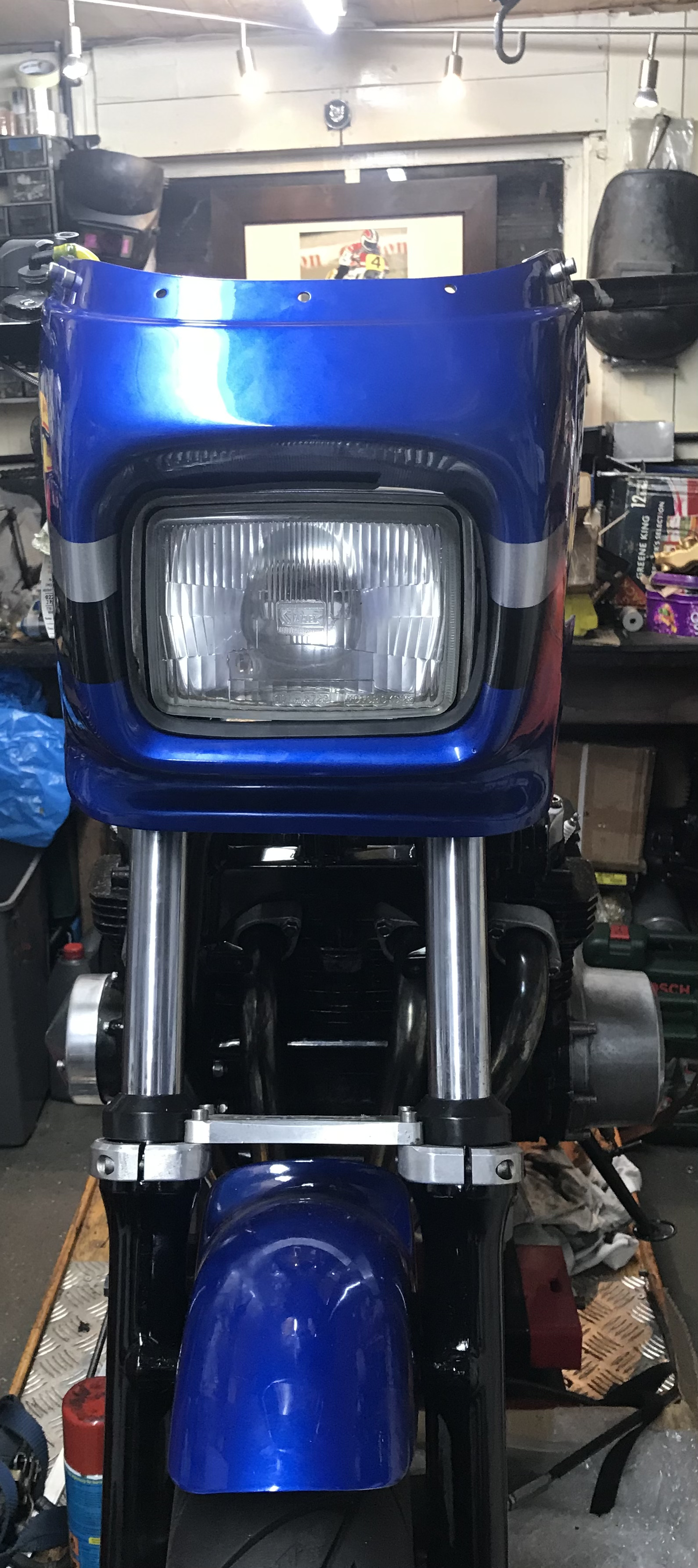 After much deliberation and cutting of ally I managed to get the fairing mounted up ,