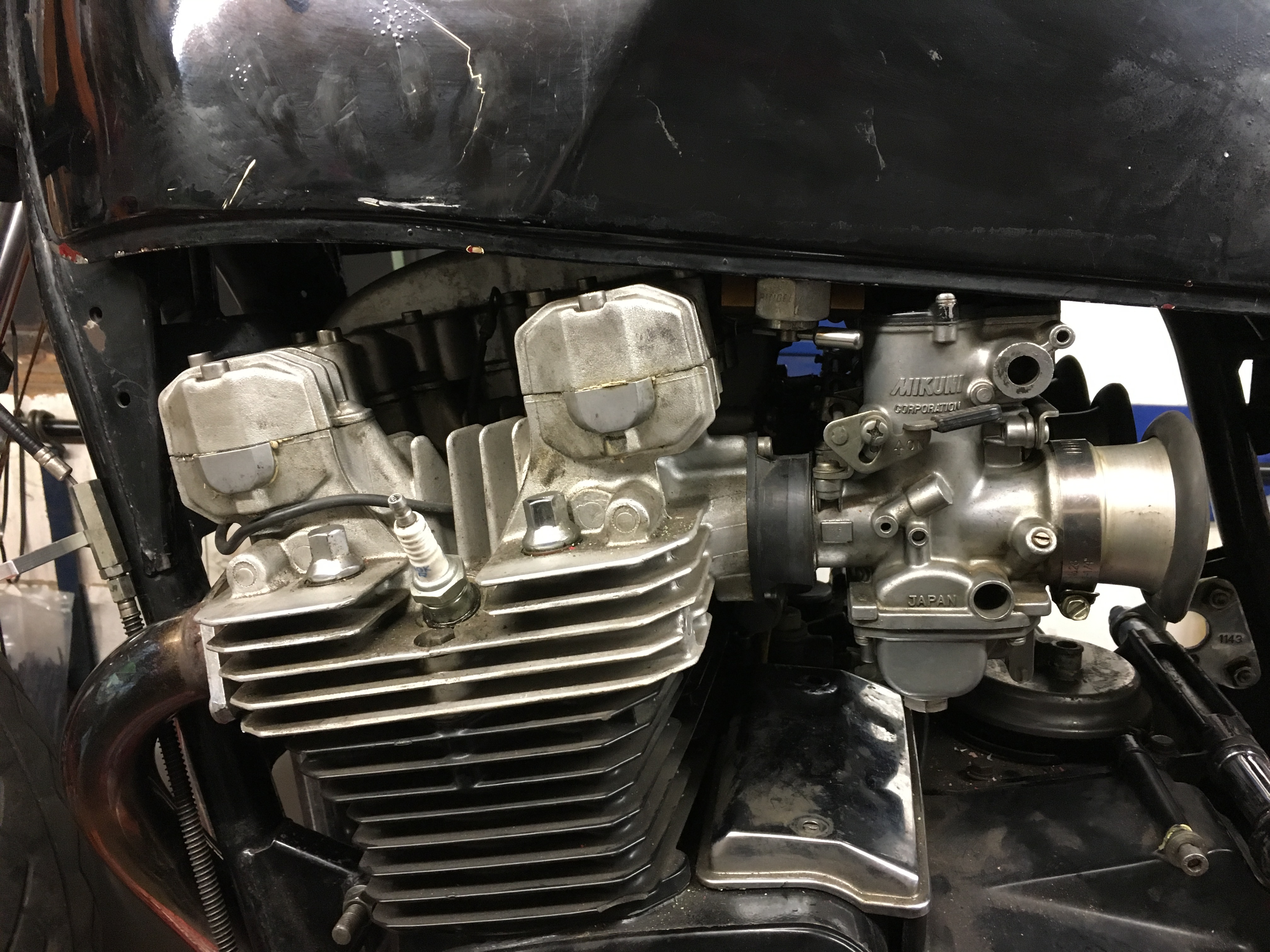 The tank (newly sourced and decent inside) looks like it will work ok with the mikuni carbs, not sure if it will clear the petrol tap with CRS fitted though.
