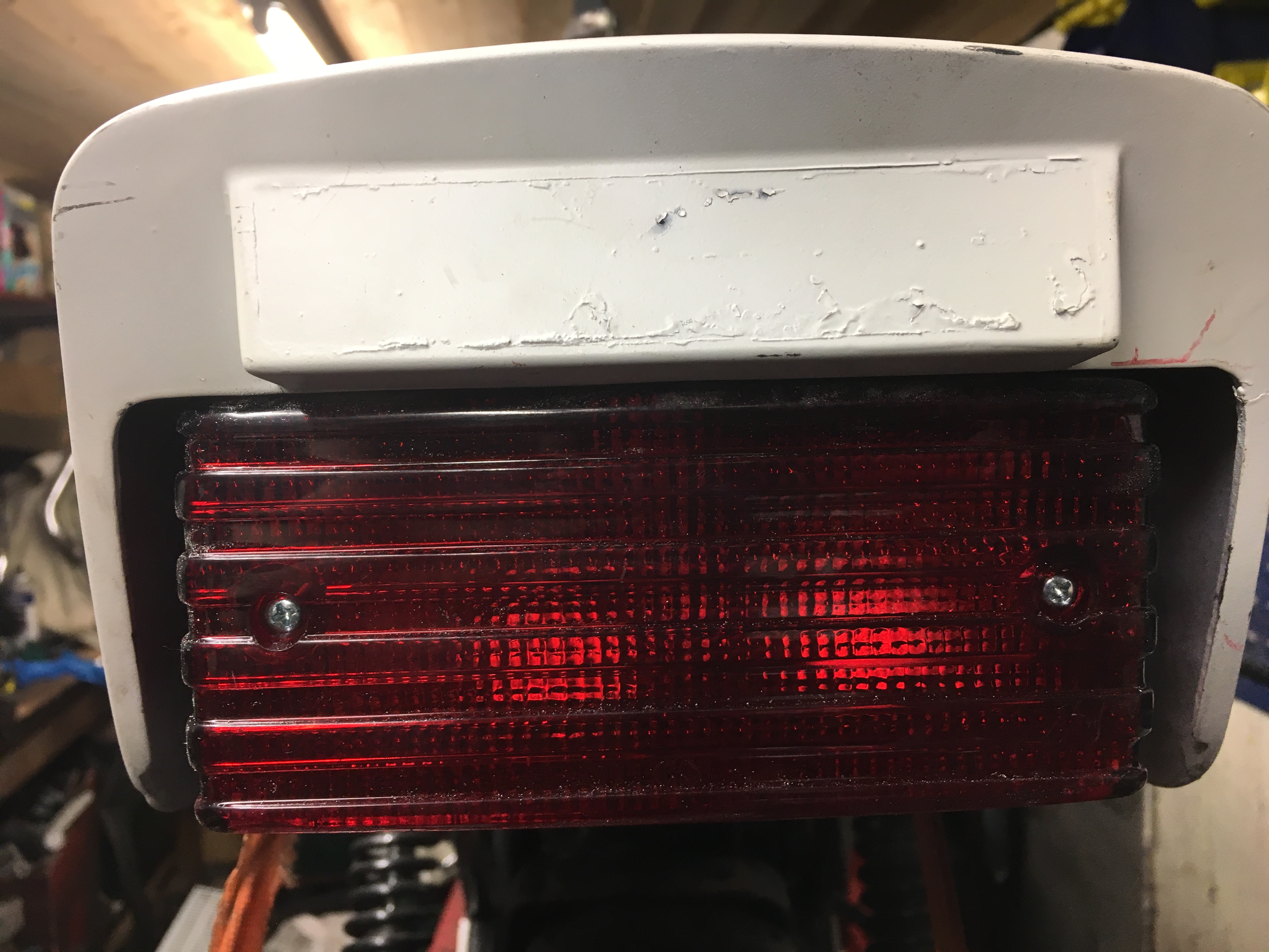 The next job was to plastic weld the mounting lugs on the tailpiece, which I originally thought was glass fiber but its actually an original. So using an old fairing in fill panel and tie wraps I moulded some new lugs into the tailpiece.