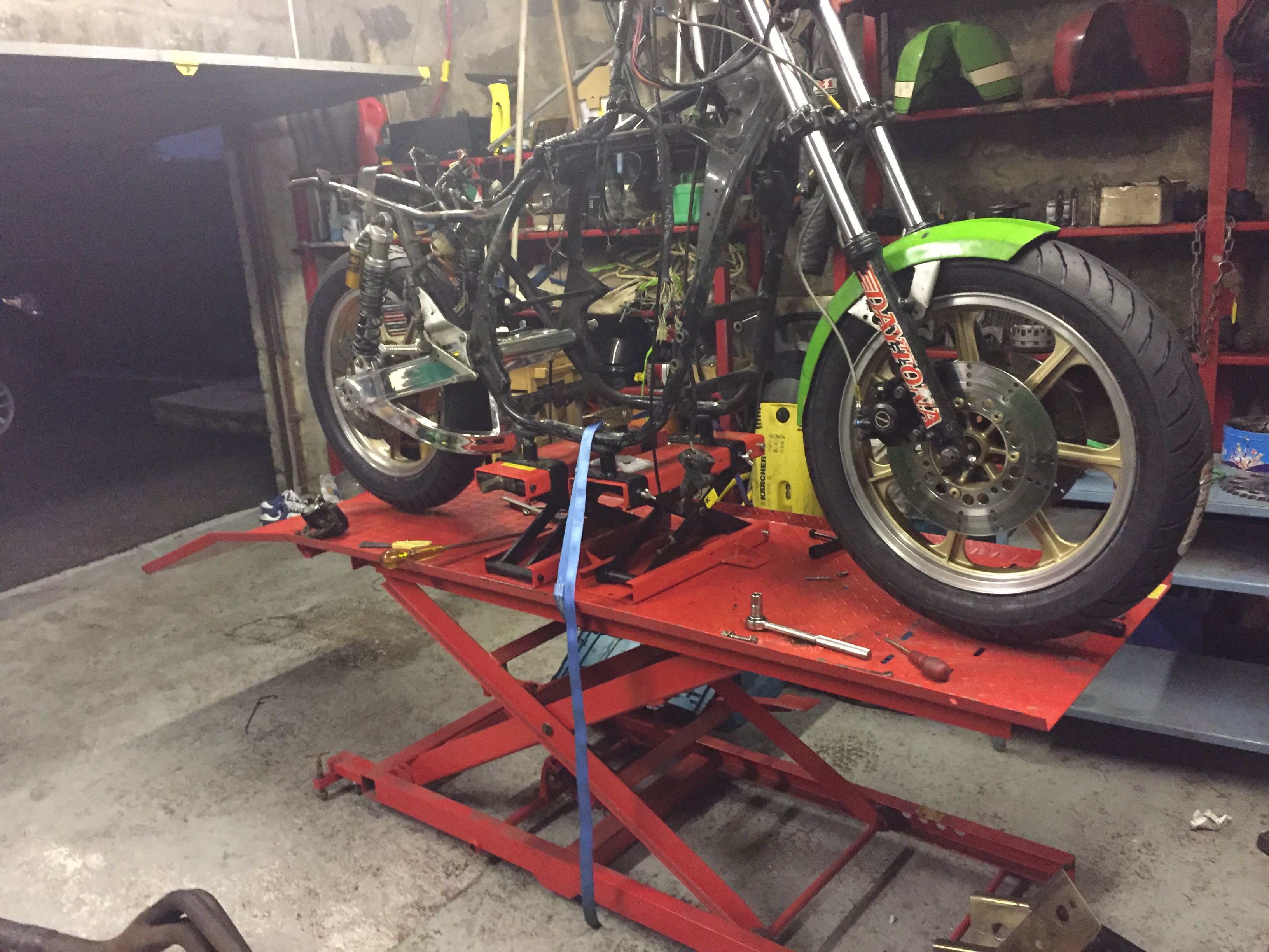 would you not consider later running gear mate?zrx front goes straight in,swingarm just needs a sleeve,vastly improved handling and they look a lot better as well.