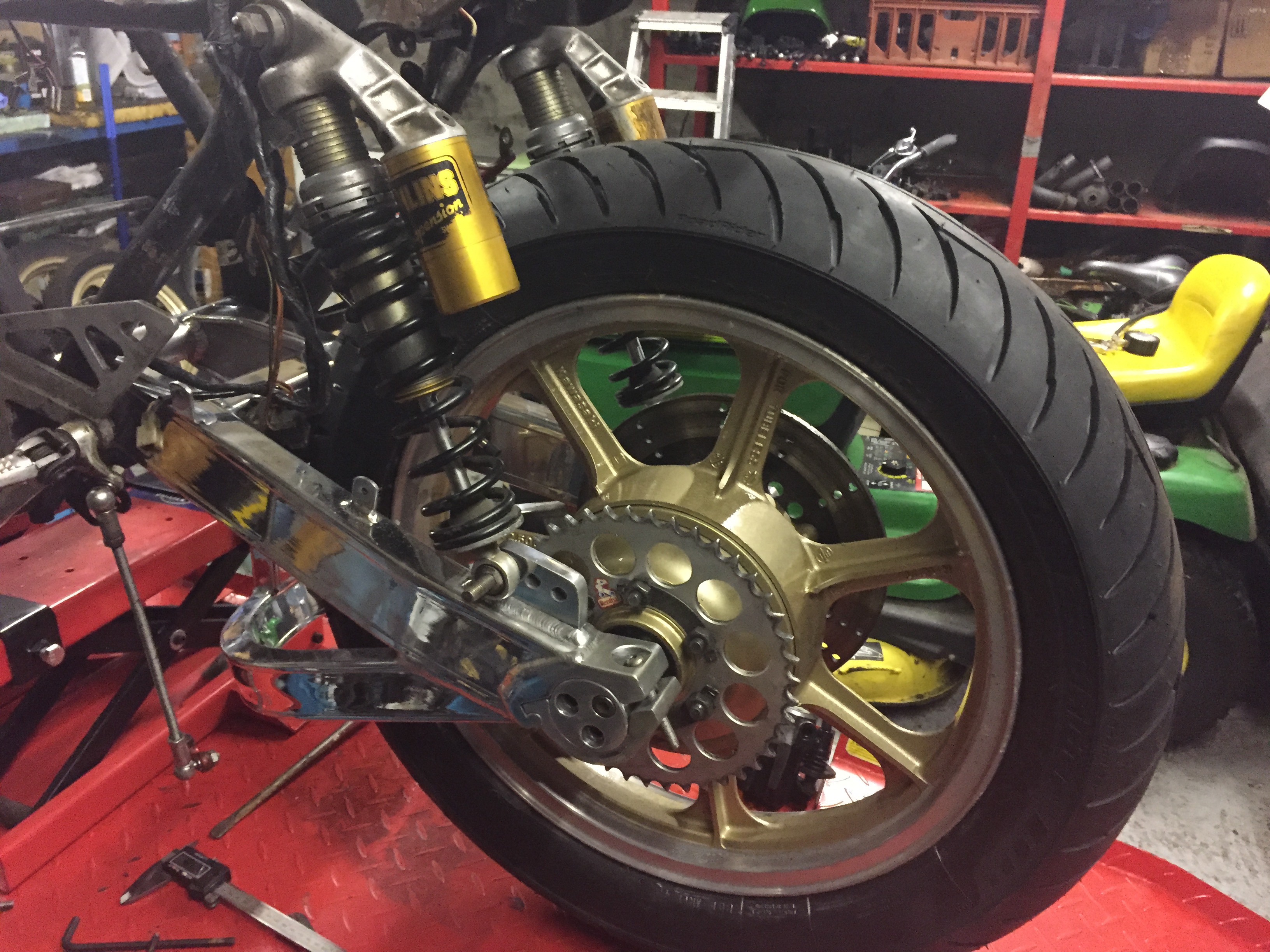 z1000puddin wrote:The rear brake calliper seems to be a GPZ type, but I don't have a calliper mounting bracket . Another thing to sort.