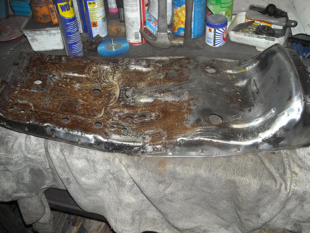 Next it was time to remove as much rust as possible from the bottom of the foam .