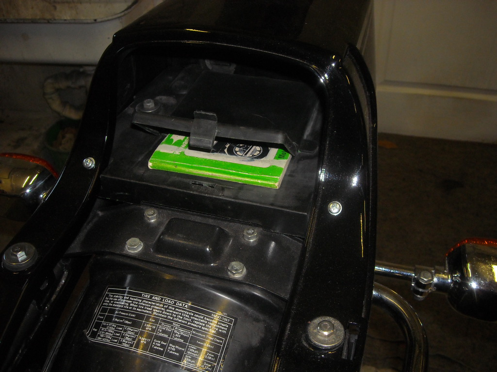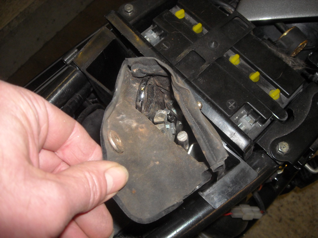 This is the place where the kickstarter of an ST belongs: under the air filter and battery box, attached to the frame by a U shaped bracket and a butterfly bolt.
