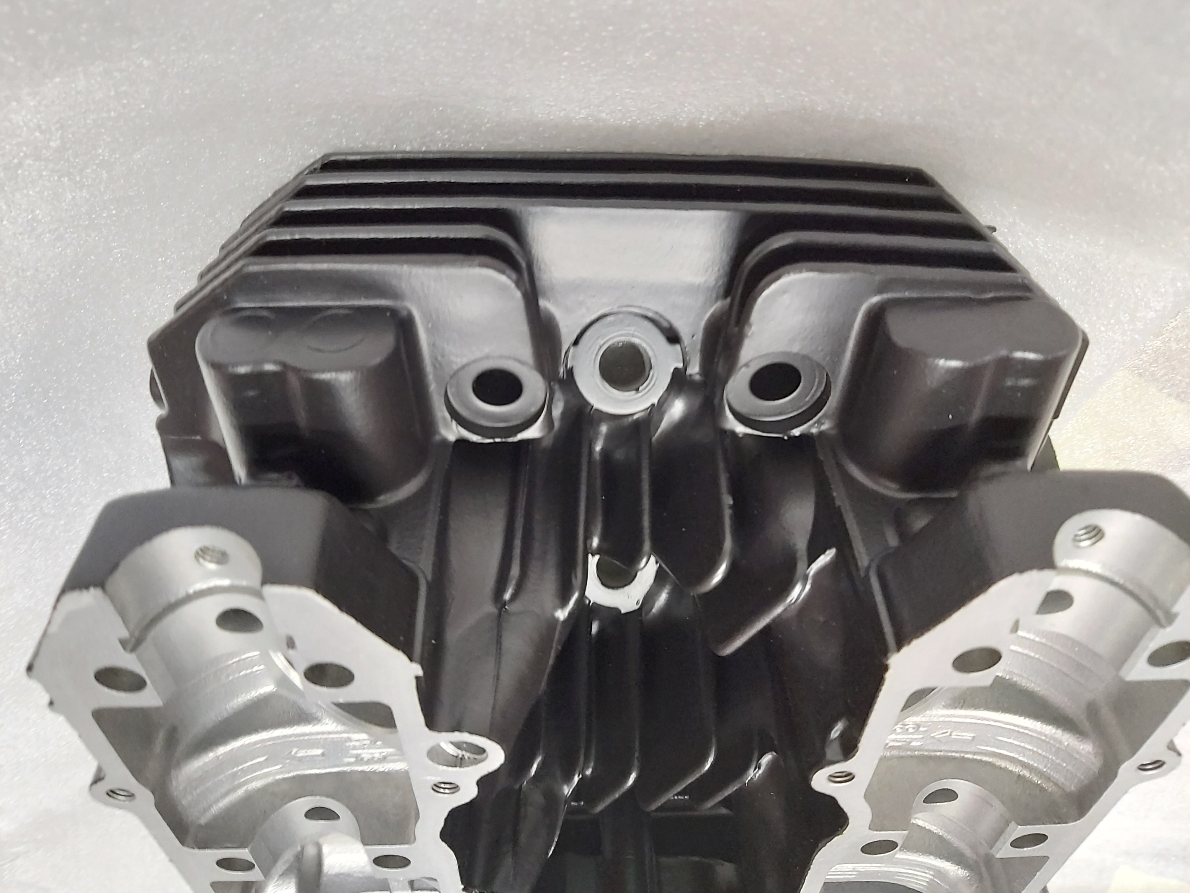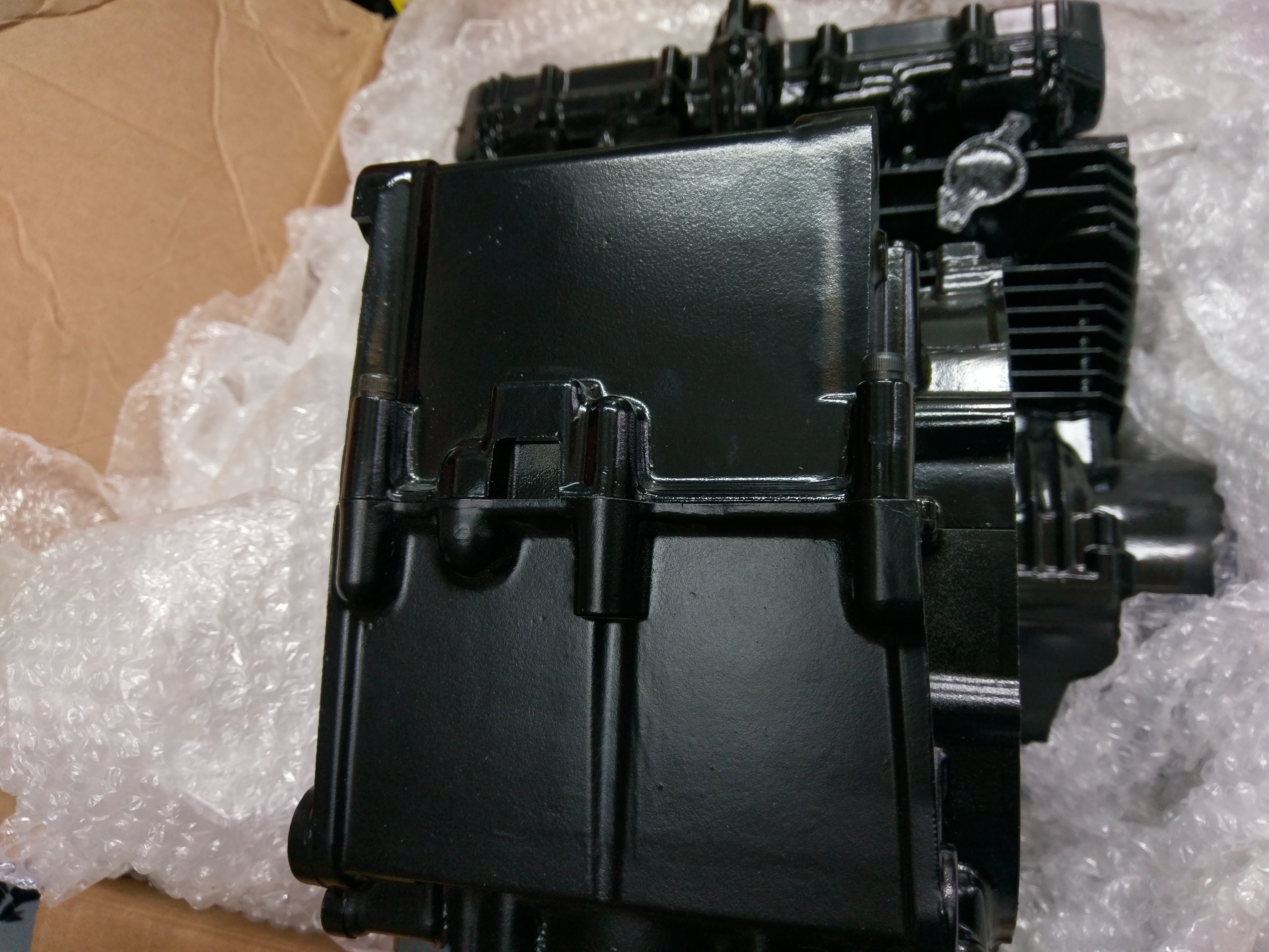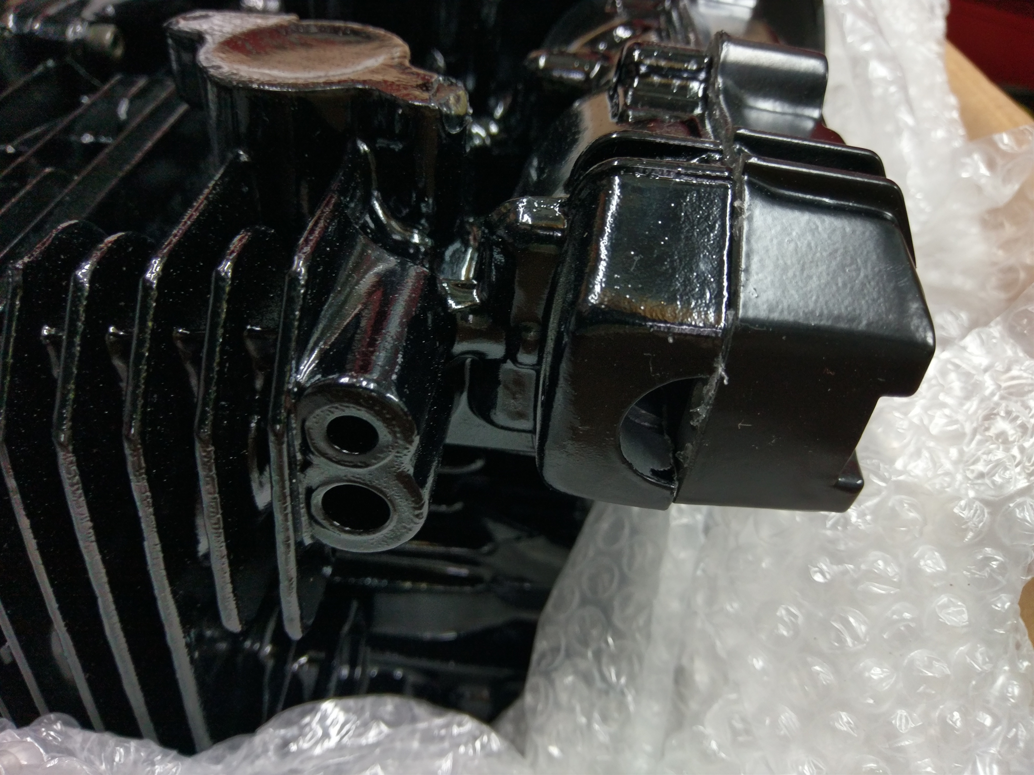 All the engine should be a satin black with gloss outer covers, but the head/ barrels were gloss, the 2 crankcase halves were different shades of satin, there was far too much paint on the rocker cover and missing patches elsewhere - all in all a really bad job. Needless to say, I got my money back, plus the cases being cleaned back to metal again for free. I'm getting tired of this now - companies taking months to do stuff and then it comes back not as it should :(