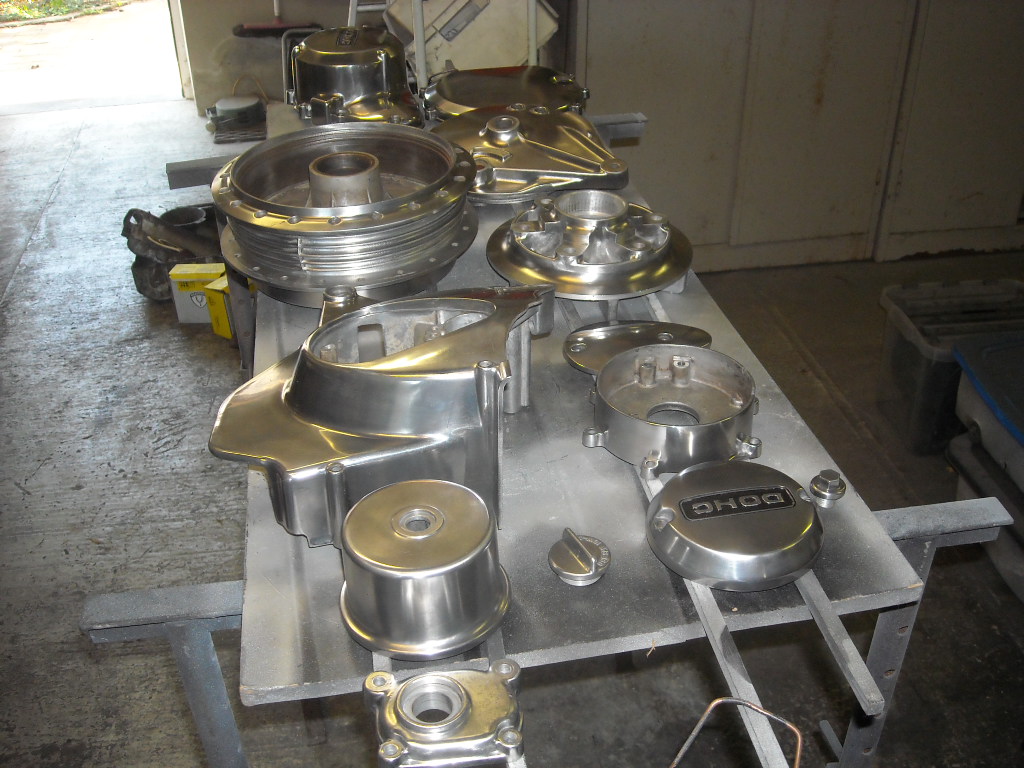 When all the parts are ready, I put a clear coat on them. It's a clear coat developed for use on light alloys, it's a French brand and I'm very pleased with it. I've used it several times in the past and it stays on! The alloy doesn't start to oxidate again.