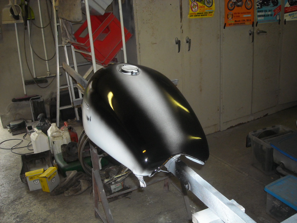 Something went wrong...the clear coat became white!!! S**T happened again. I know nothing about chemistry so I had to sand the fuel tank and the tail piece again.