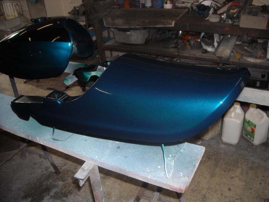 The results were a disaster...I had to respray a part of the fuel tank with the blue paint and the tail piece completely. A major setback. But that's life.