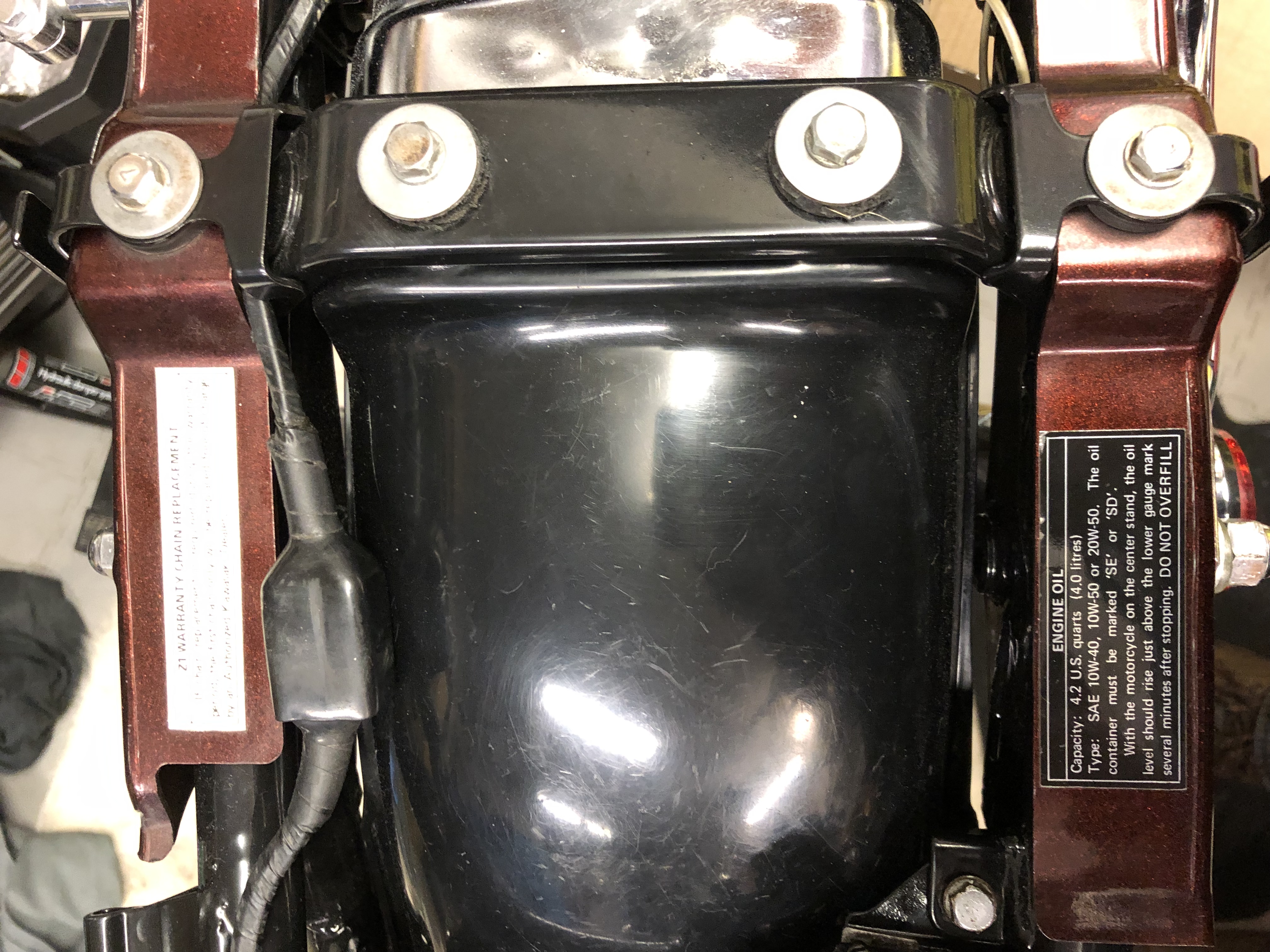 I noticed that the previuos owner fitted an oil cooler. If you leave it off, find a new housing for the oil pressure warning switch and use 4 pan head screws to mount it.