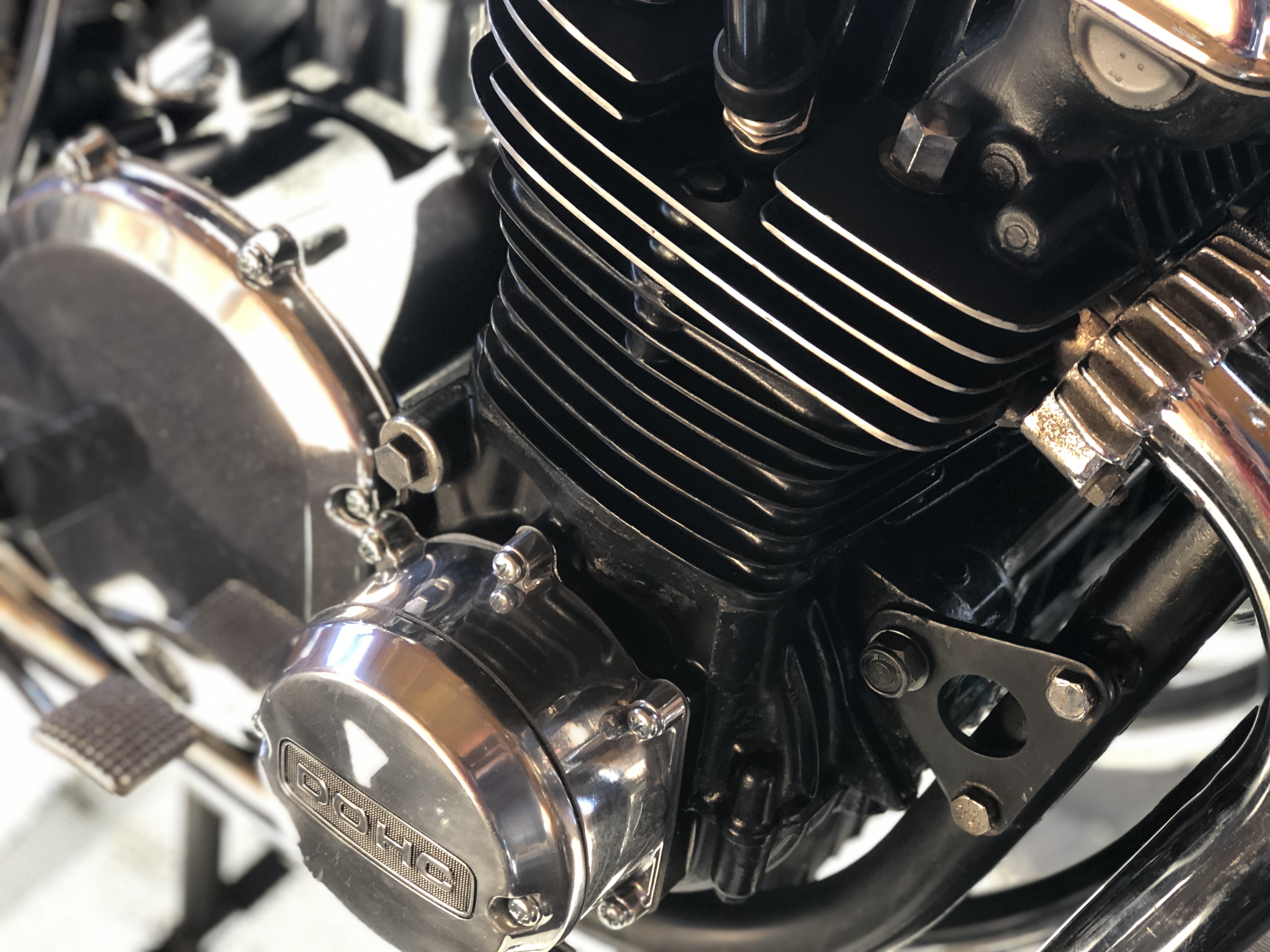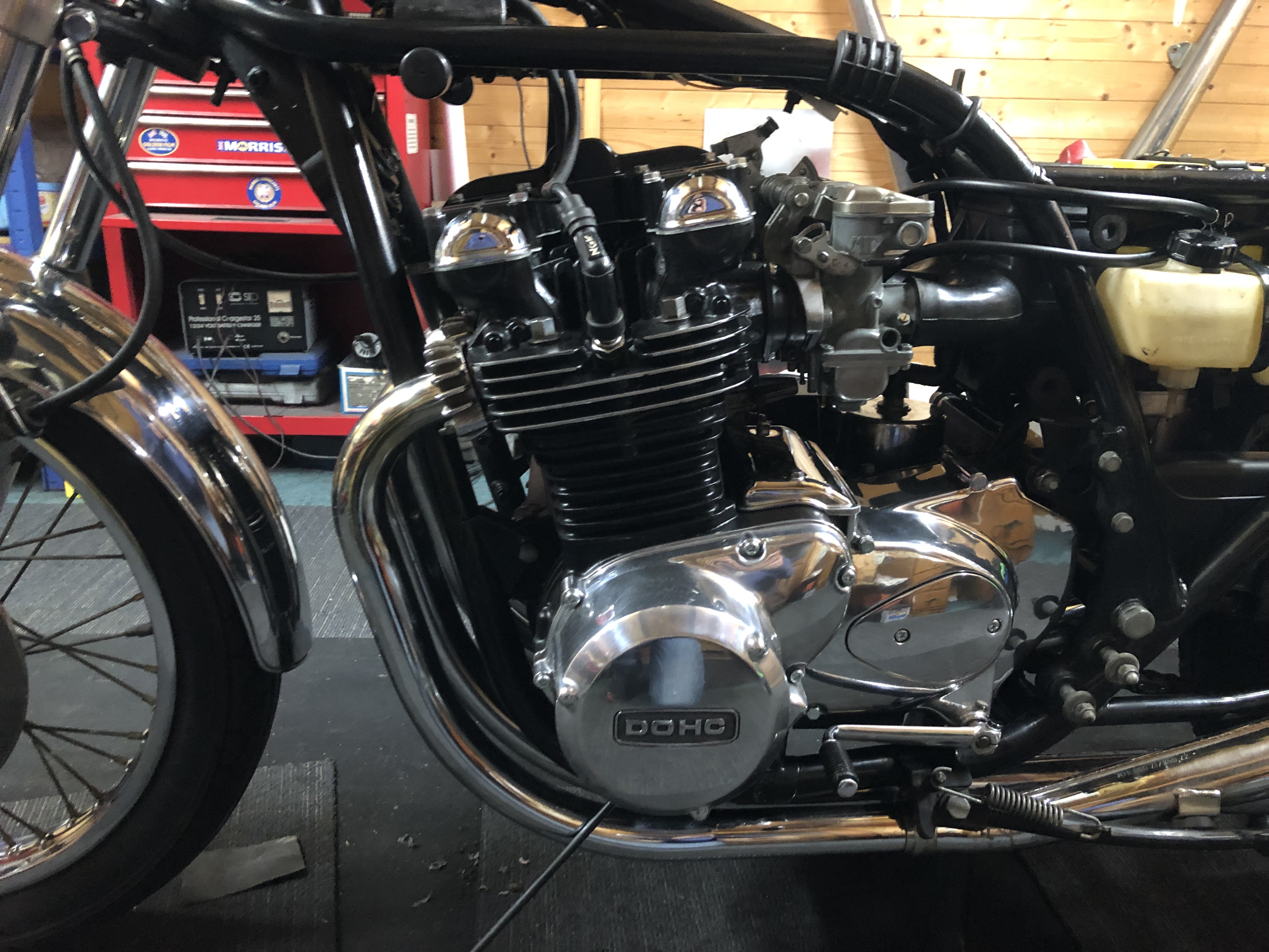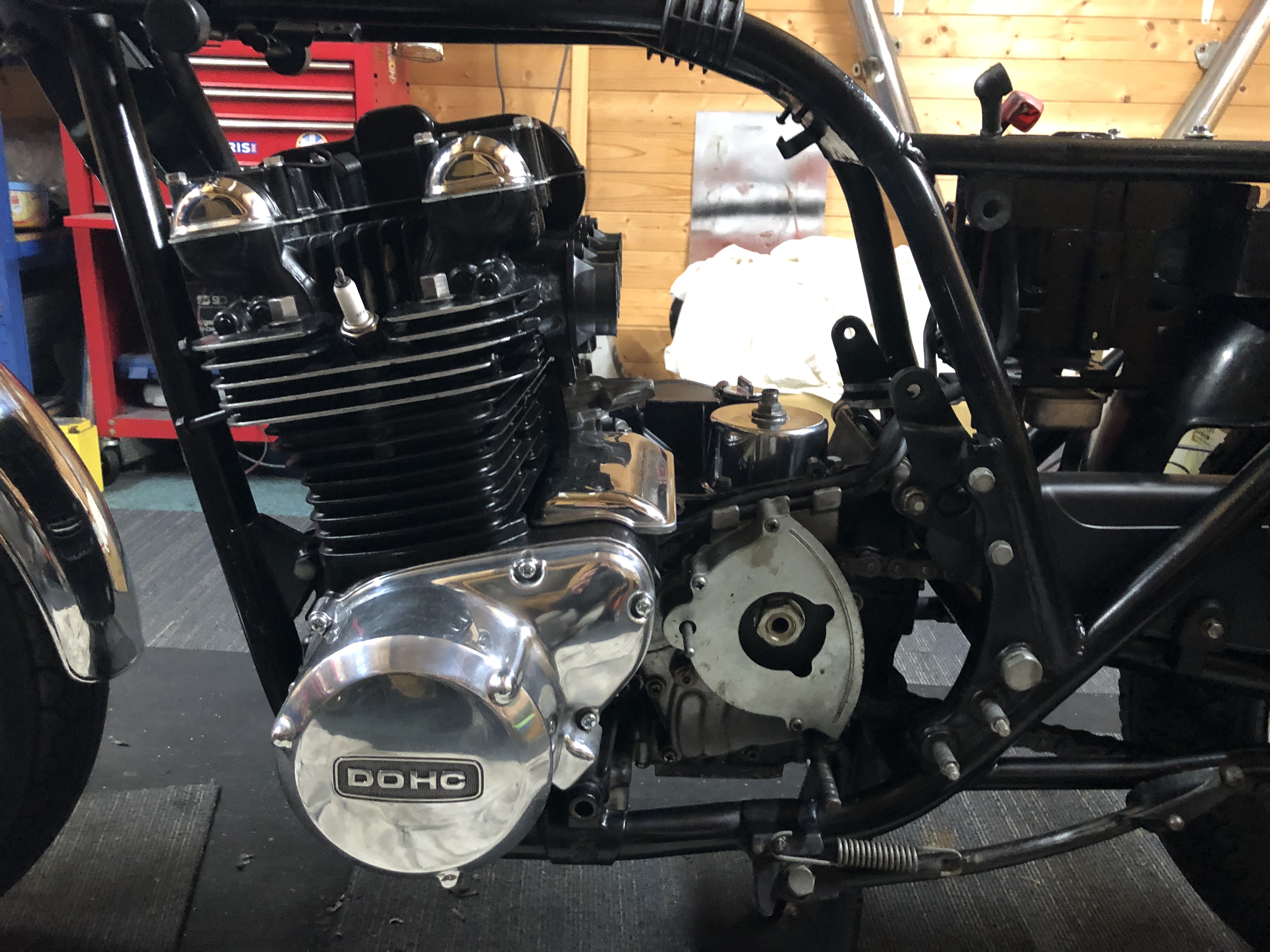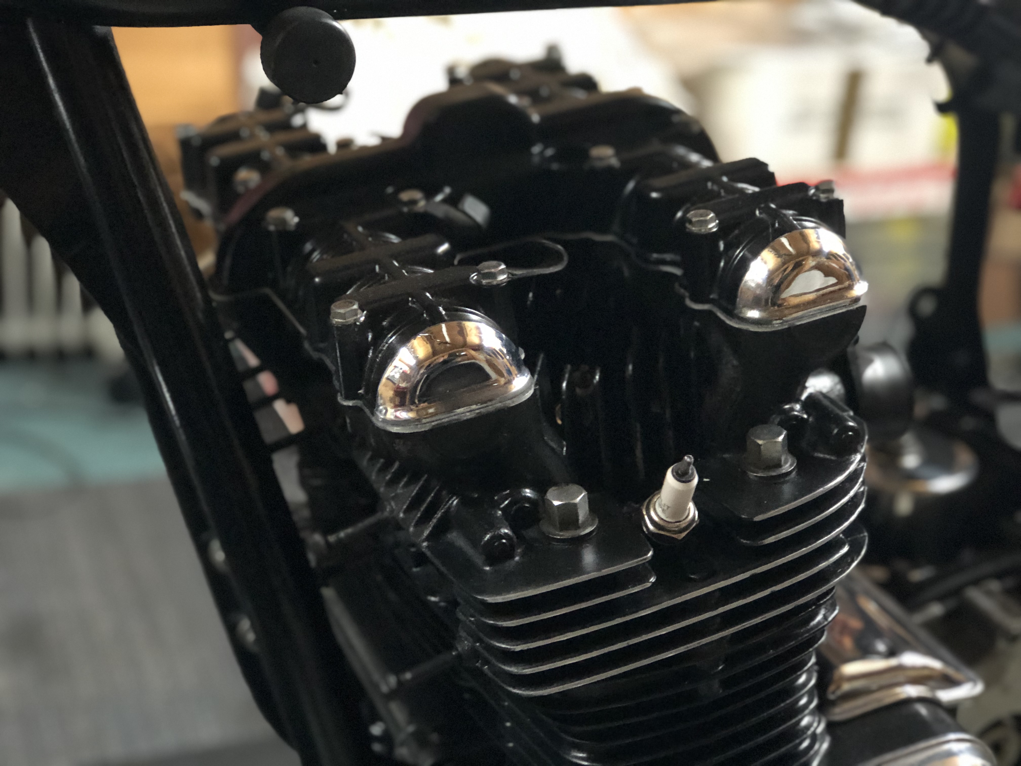 So, engine paint is finished, all polished cases put back on with fresh gaskets and correct JIS screws, ribless carbs put back on with fresh fuel lines, oil back in. Not long now until first fire for 20+ years. Bores oiled many weeks ago and has been turned over by hand with plugs out for the past few weeks quite regularly.