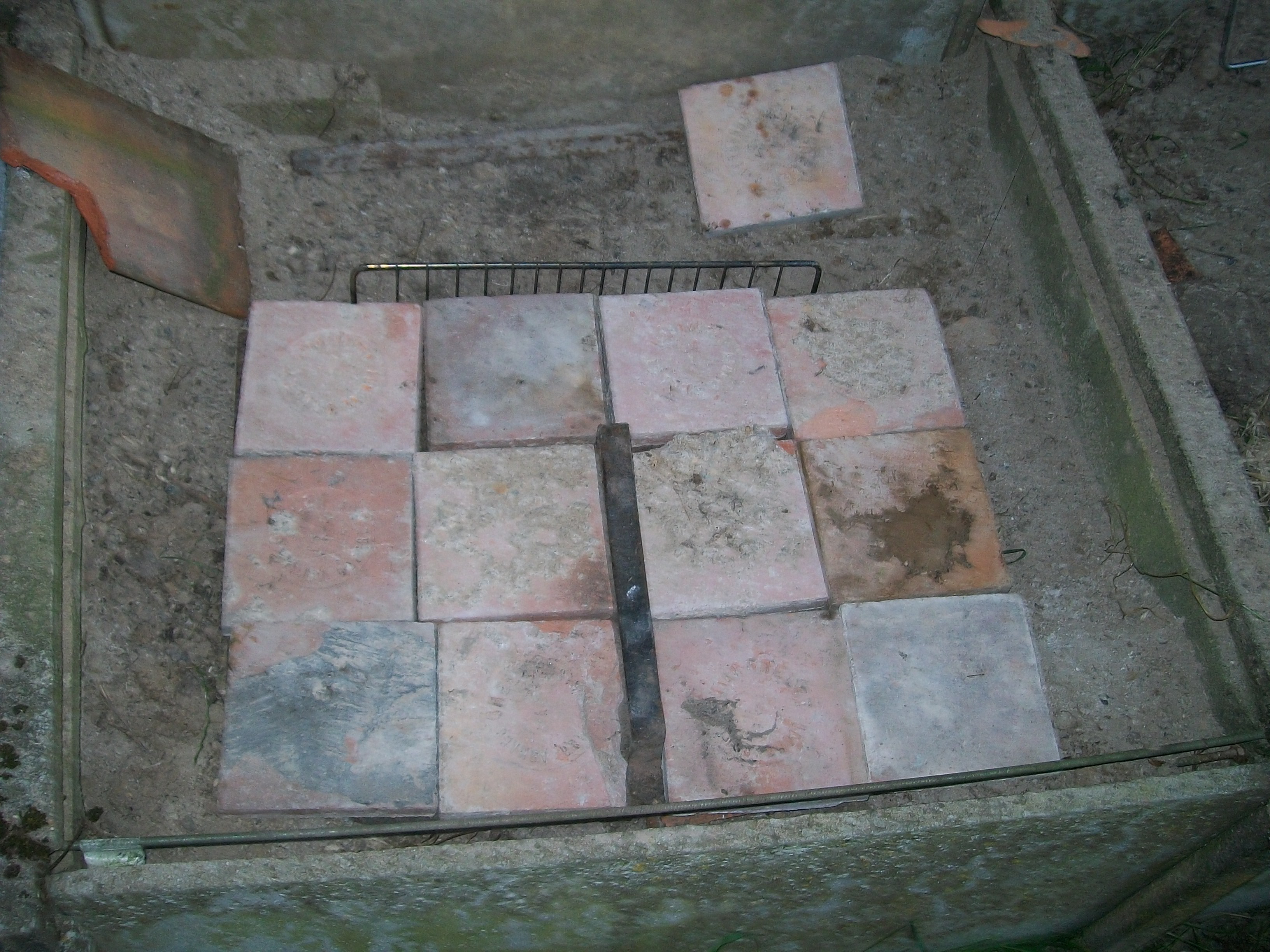 The embers are under the tin sheet with small roof tiles and 1/2 inch floor tiles for insulation all in a rabbit hutch turned on it's side (not a hutch for kids to look at them in....). It didn't get it hot enough to get last liner out but it was hot enough to get it back in and now it fits in the oven again. Back in the oven at 200, sorted.