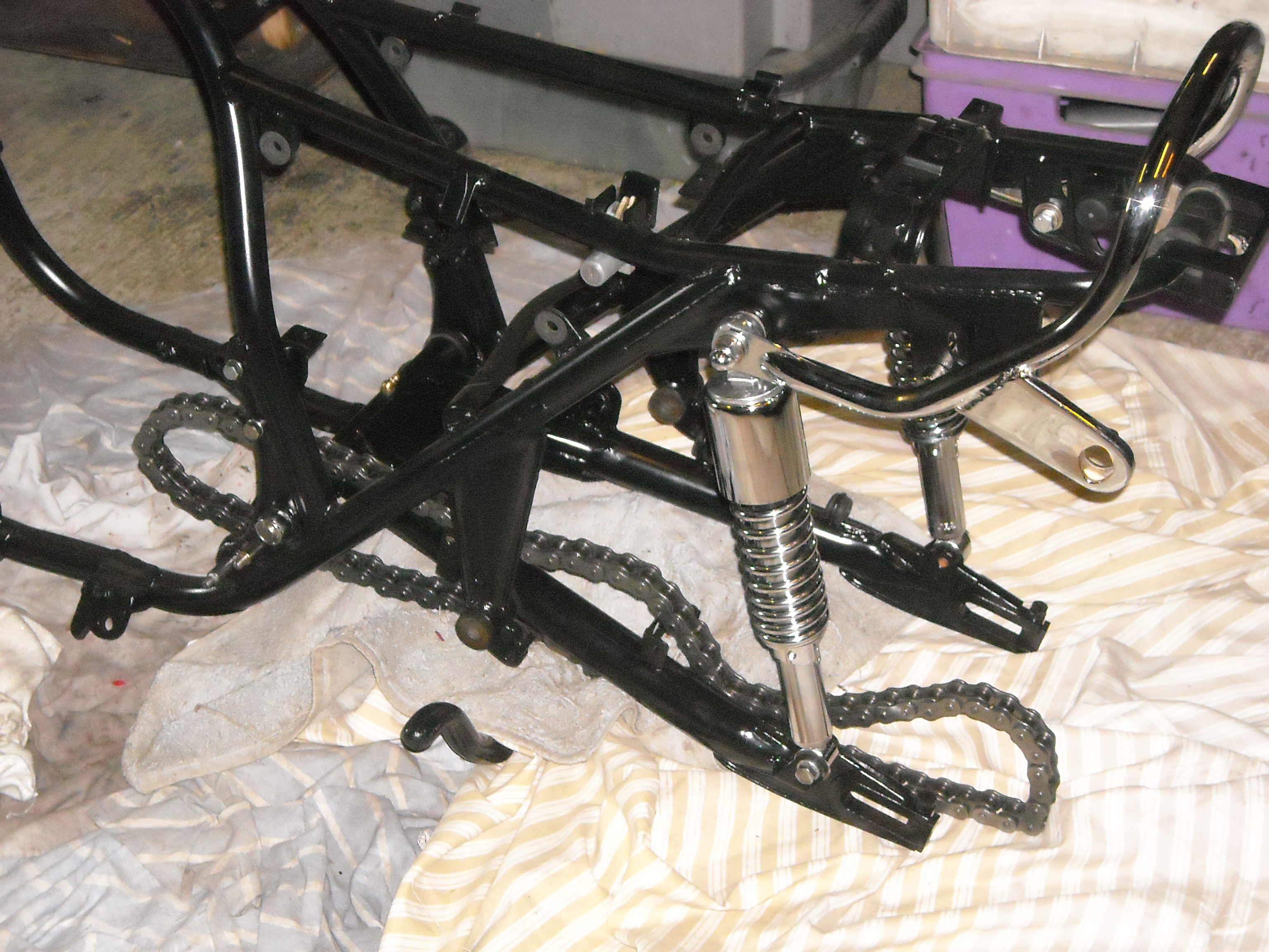 The rear brake line, the exhaust hangers and the passenger footpegs are also attached,